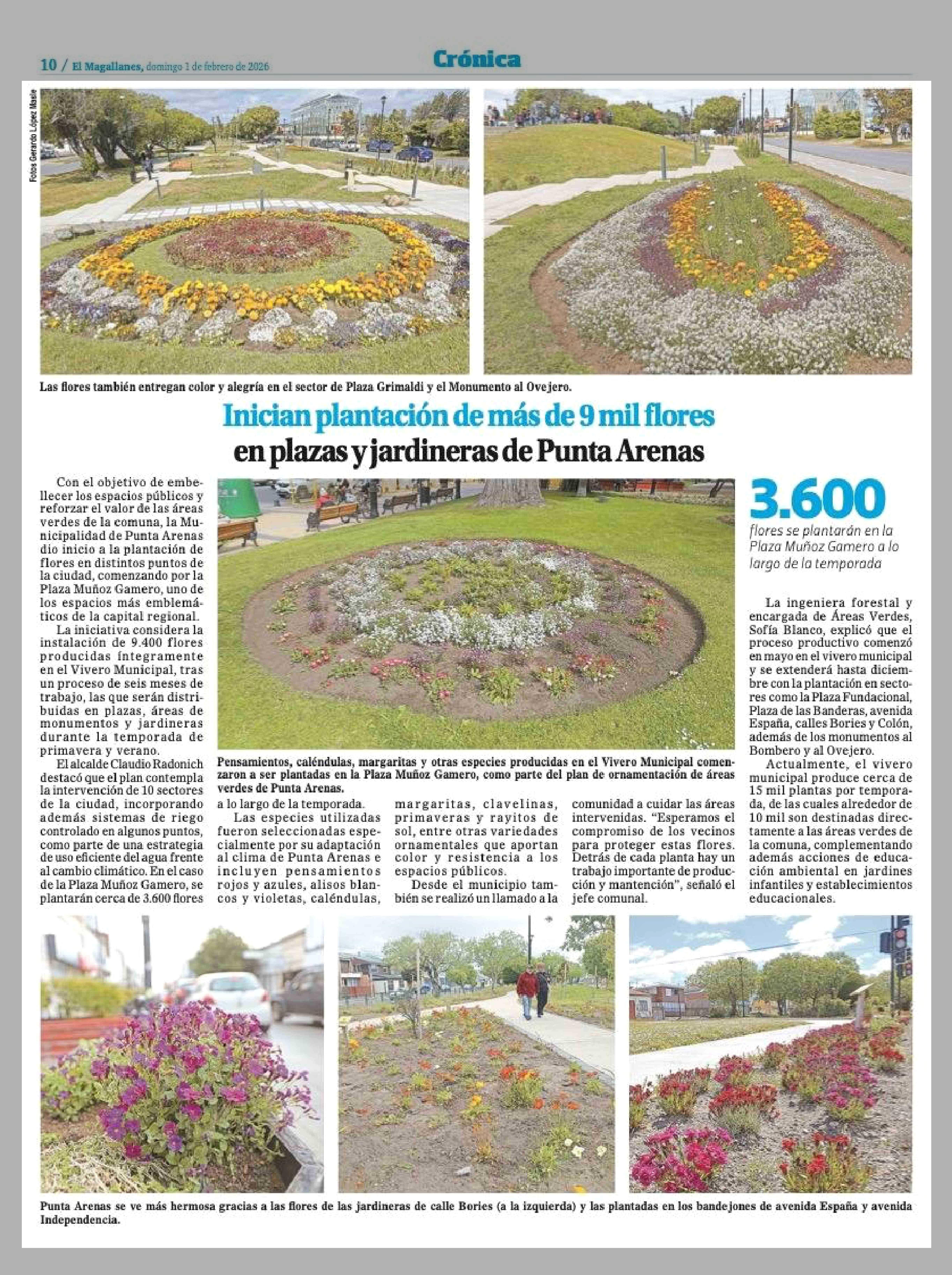 Título: Inician plantación de más de 9 mil flores en plazas y jardineras de Punta Arenas