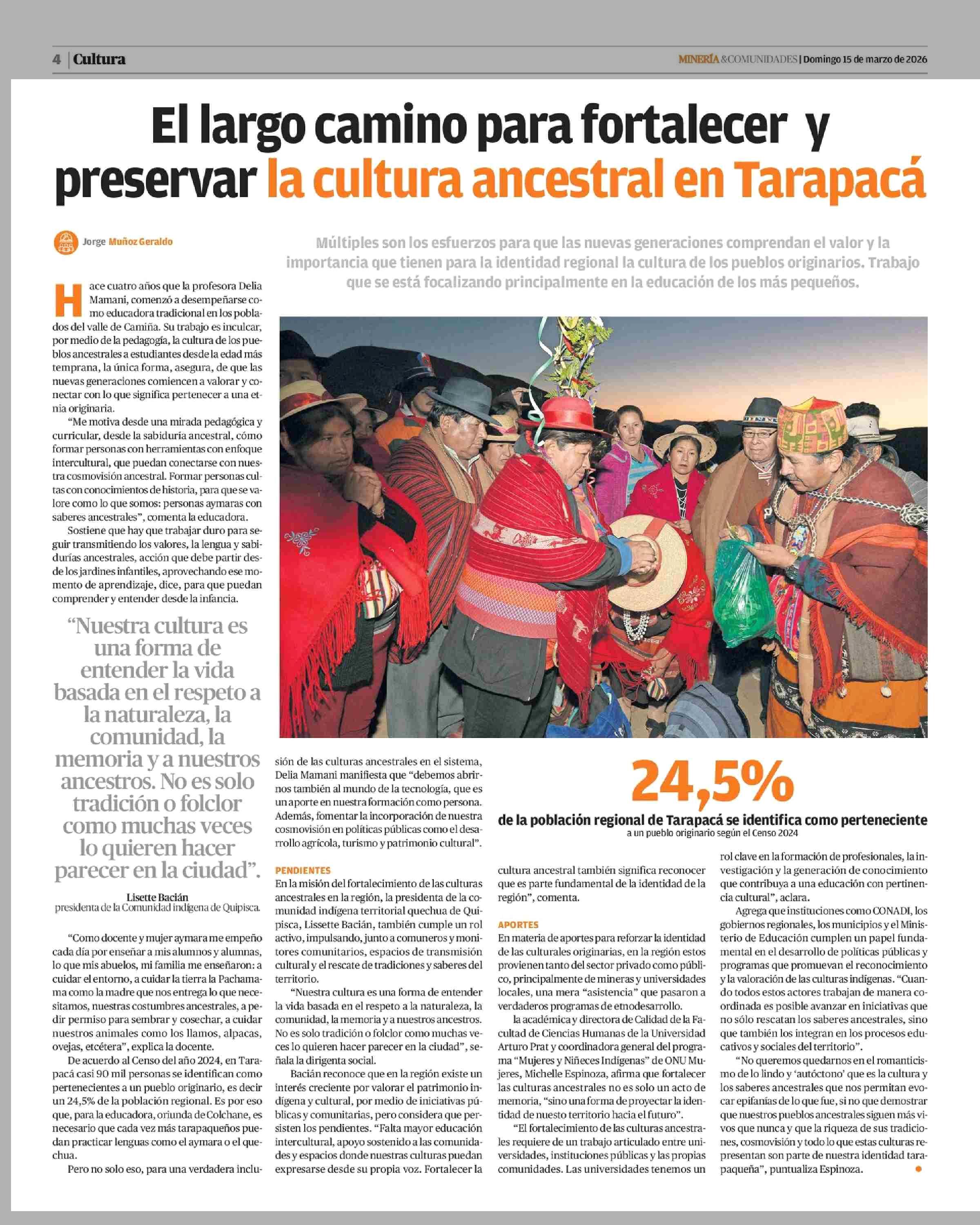 El largo camino para fortalecer y preservar la cultura ancestral en Tarapacá 15-03-2026 La Estrella de Iquique |