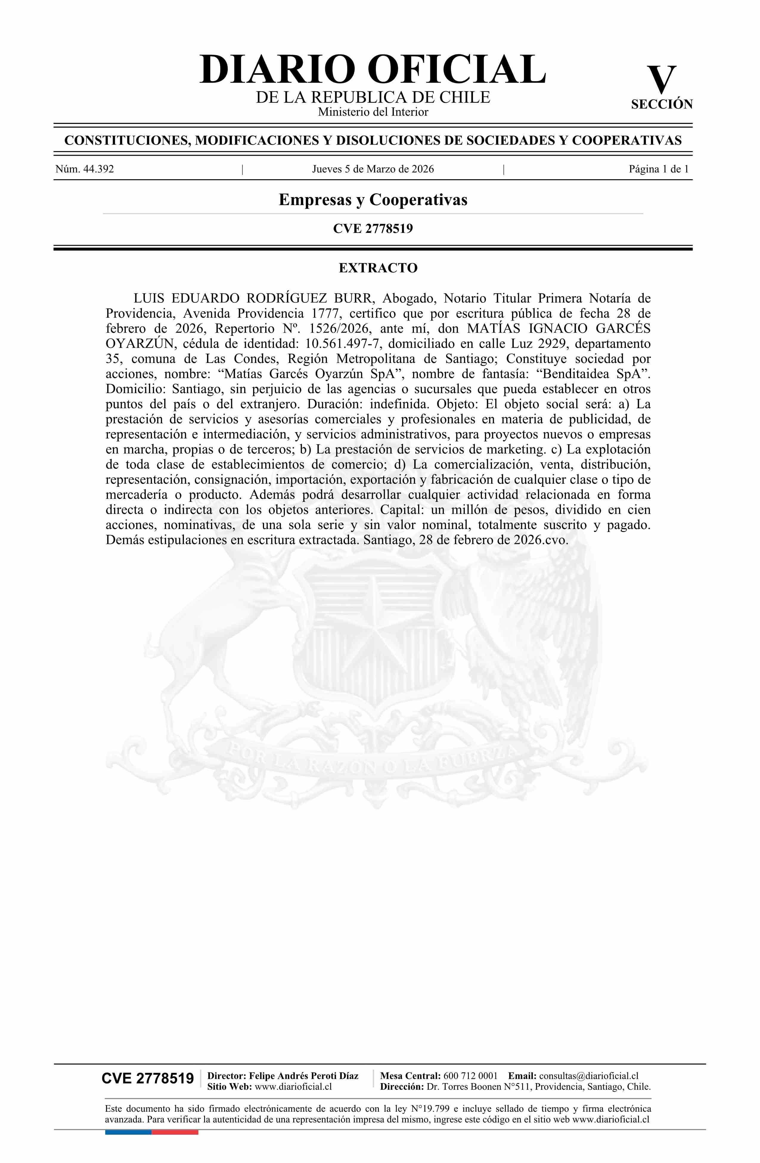 Matías Garcés Oyarzún SpA 05-03-2026 Diario Oficial Edición Electrónica |