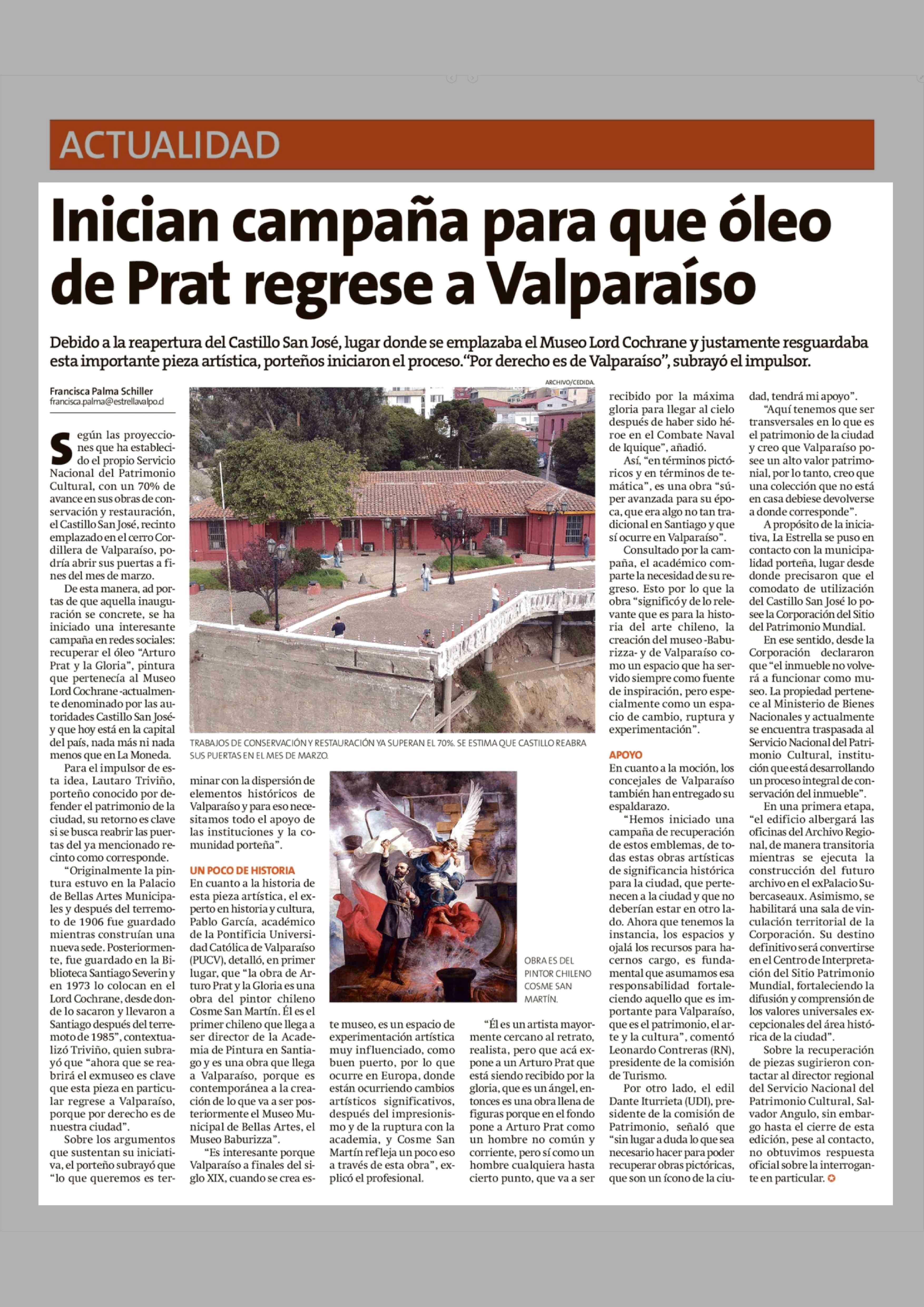 Inician campaña para que óleo de Prat regrese a Valparaíso 18-02-2026 La Estrella de Valparaíso |