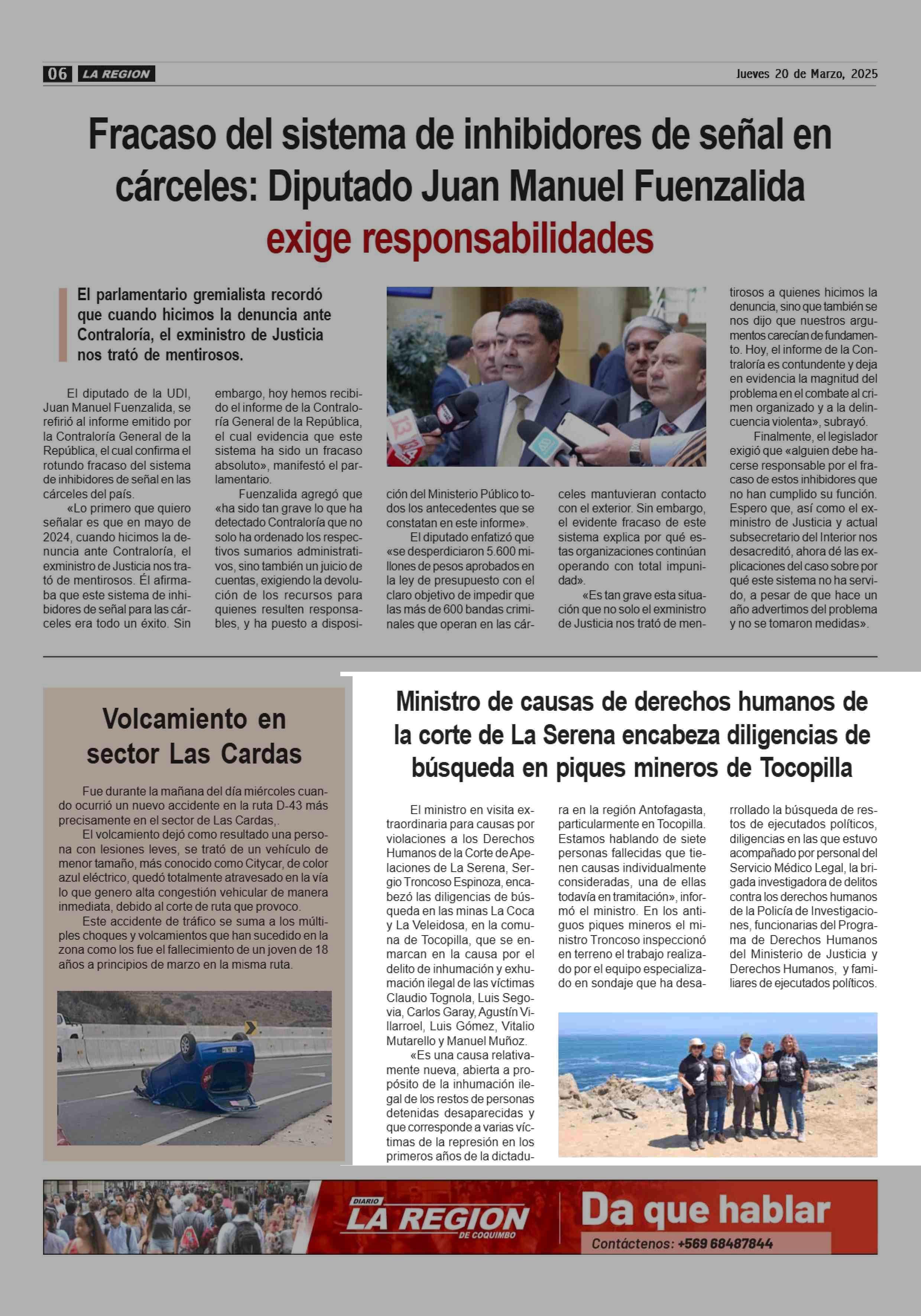 Ministro de causas de derechos humanos de la corte de La Serena encabeza diligencias de búsqueda en piques mineros de Tocopilla 20-03-2025 Diario la Región |