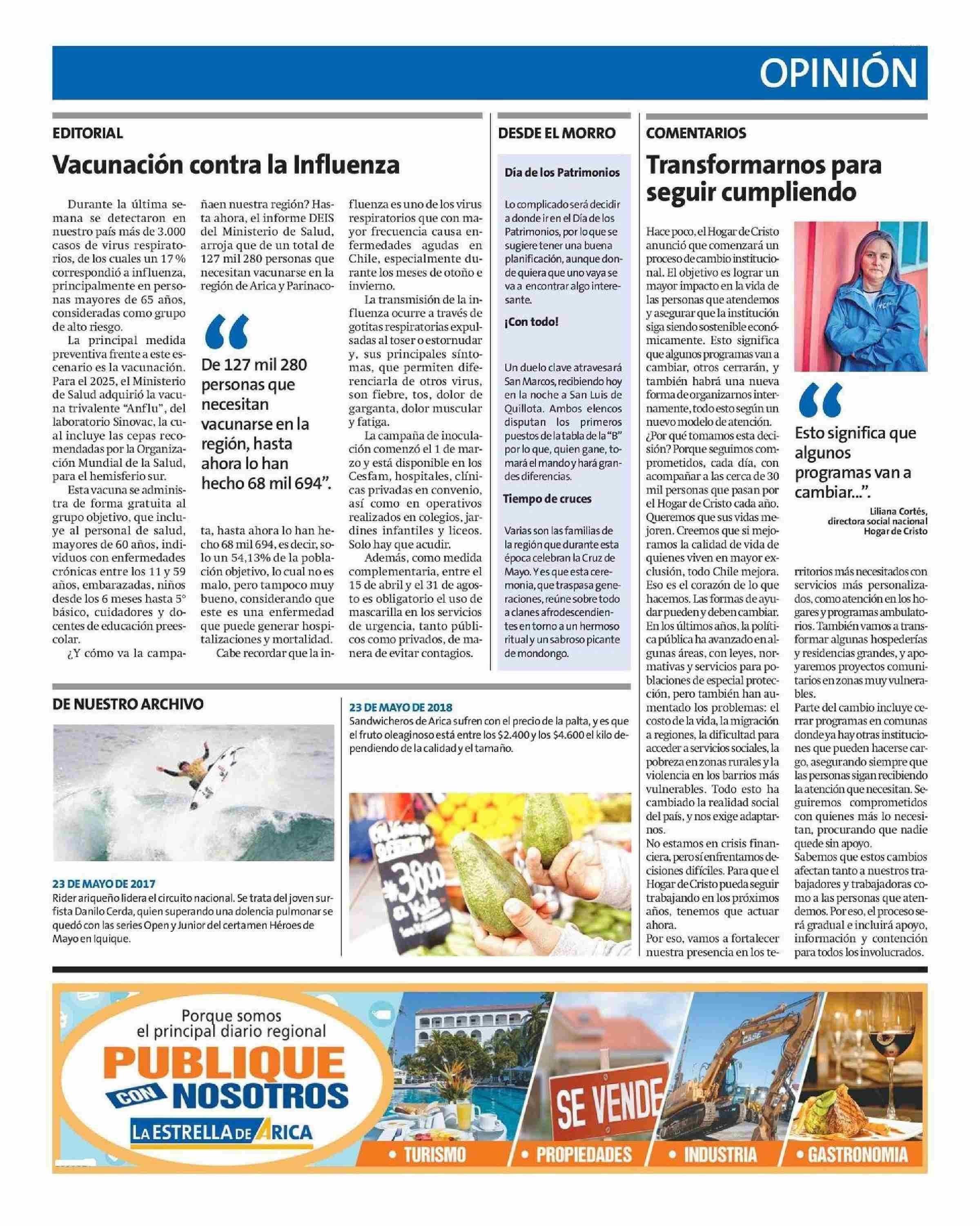 Editorial: Vacunación contra la Influenza 23-05-2025 La Estrella de Arica |
