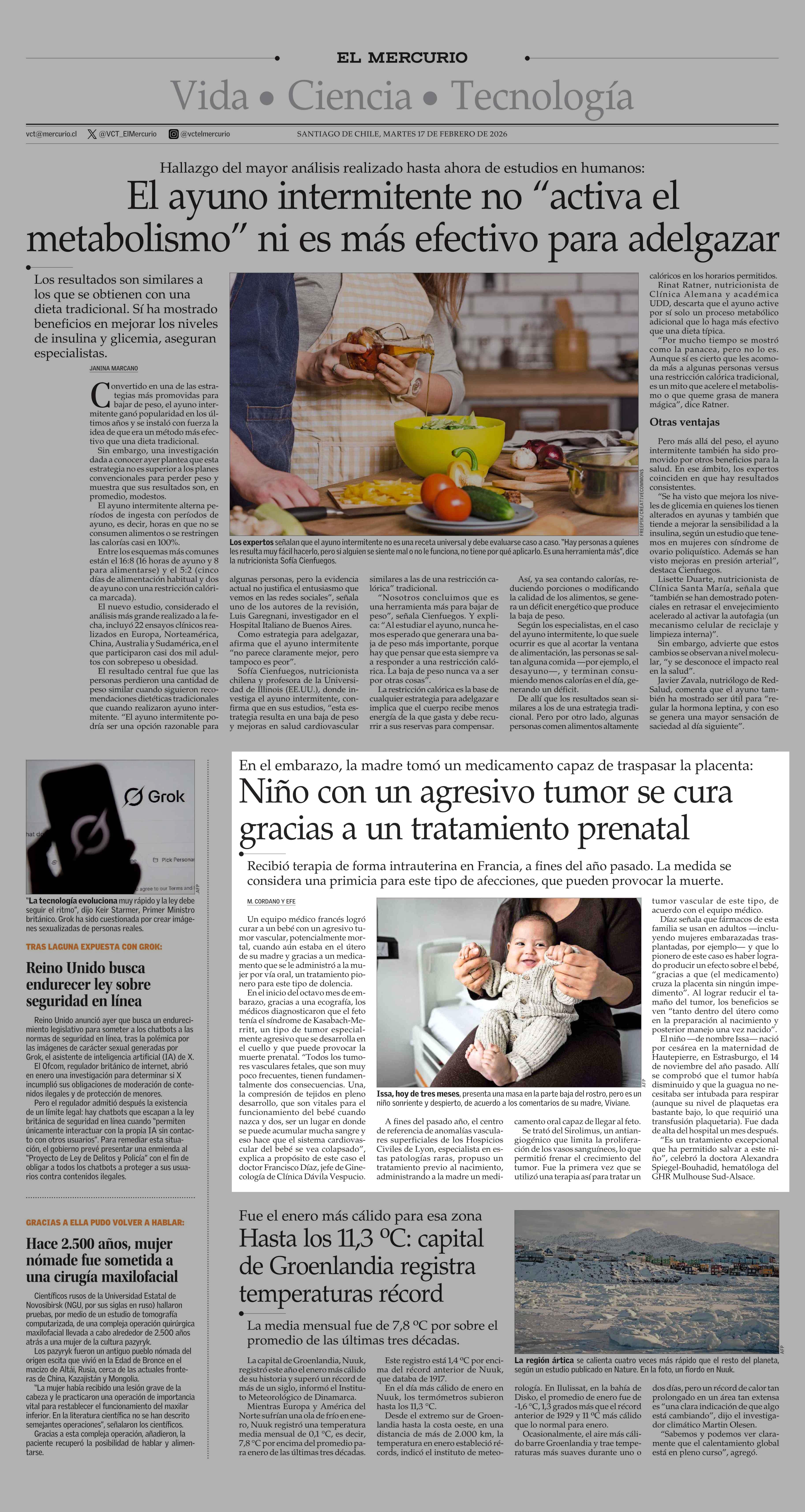 Niño con un agresivo tumor se cura gracias a un tratamiento prenatal 17-02-2026 El Mercurio |
