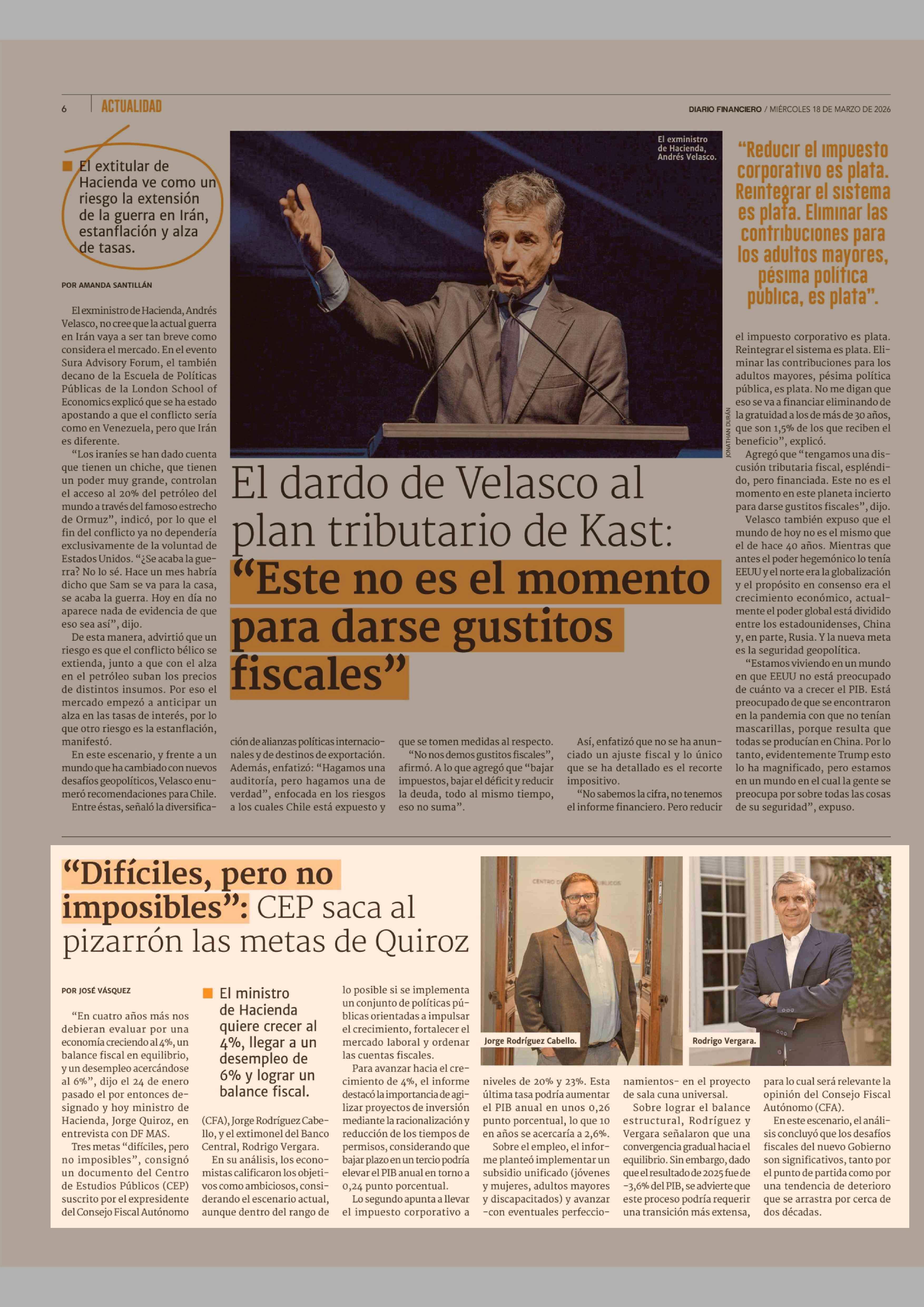 "Difíciles, pero no imposibles": CEP saca al pizarrón las metas de Quiroz 18-03-2026 Diario Financiero |