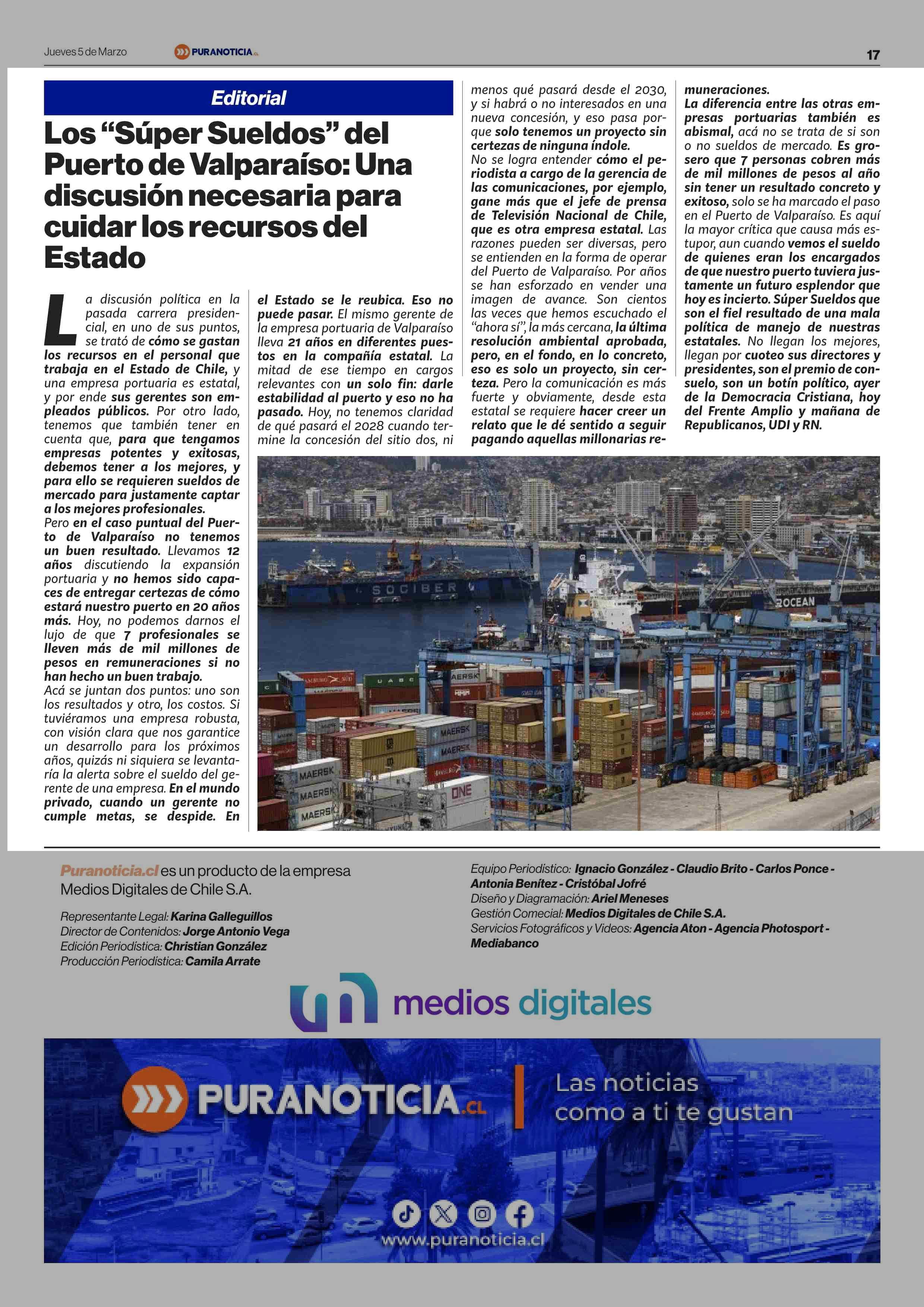 EDITORIAL: Una discusión necesaria para cuidar los recursos del Estado 05-03-2026 Puranoticia.cl |