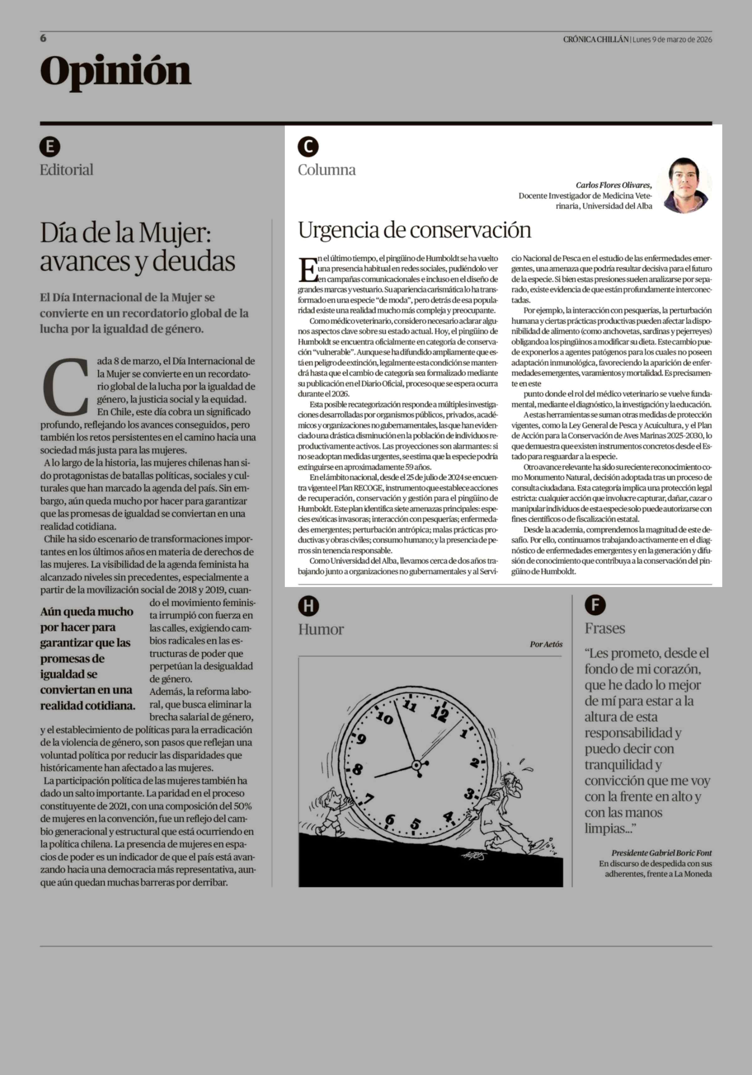 Fecha: 09-03-2026 Sector: Columnas de Opinión Región: Región del Ñuble