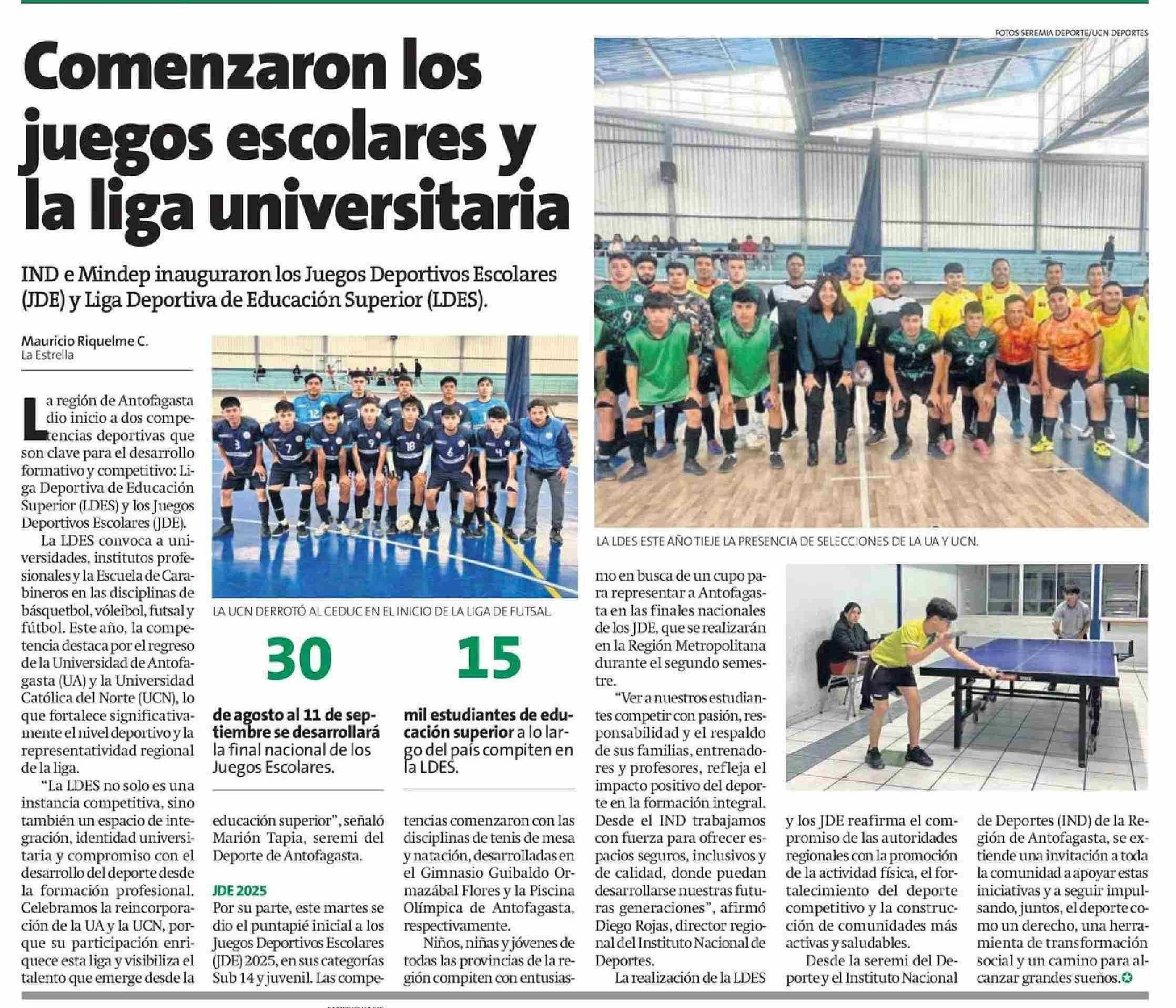 Comenzaron los juegos escolares y la liga universitaria 06-06-2025 La Estrella de Antofagasta |