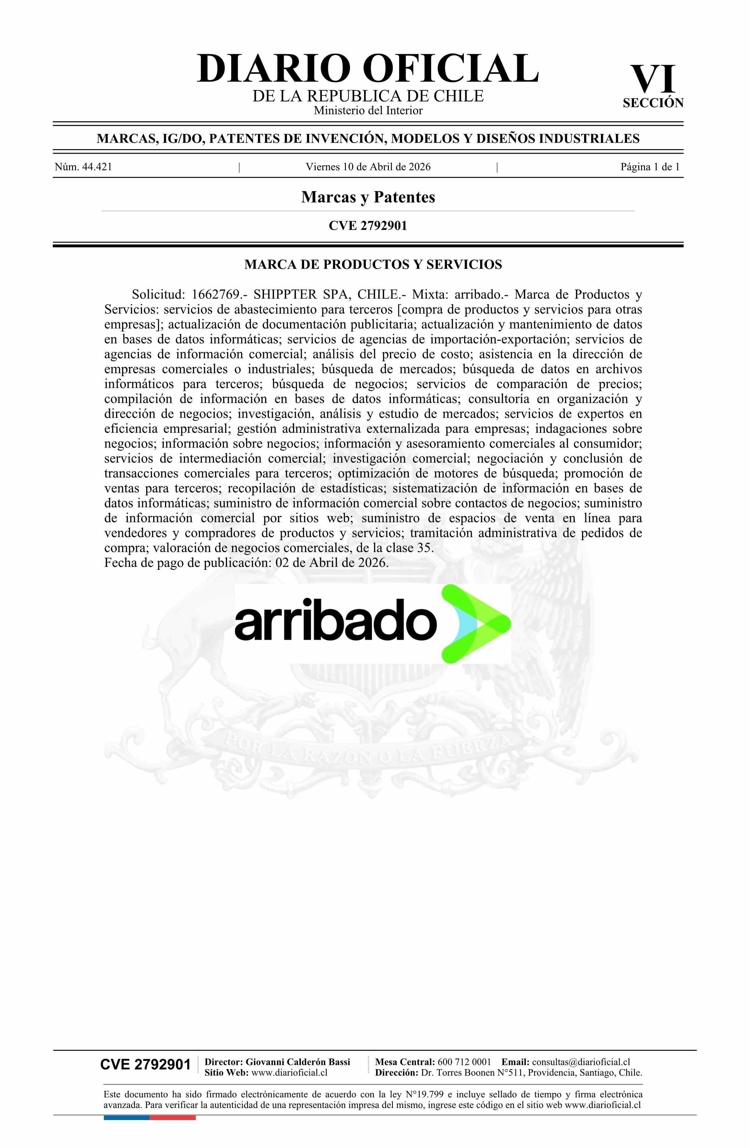 Título: Solicitud número 1662769.- arribado