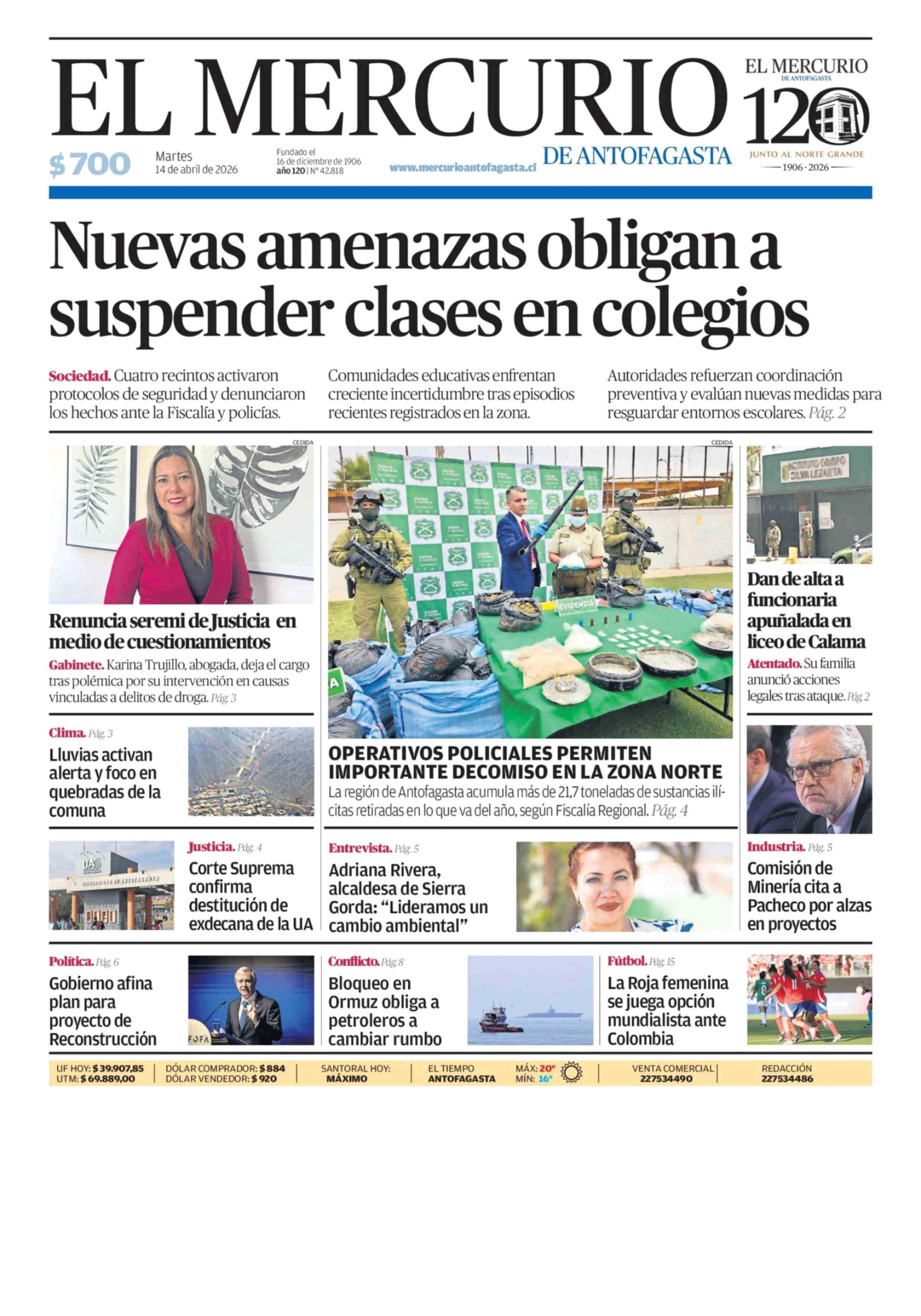 Fecha: 14-04-2026 Sector: Portada Región: Región de Antofagasta