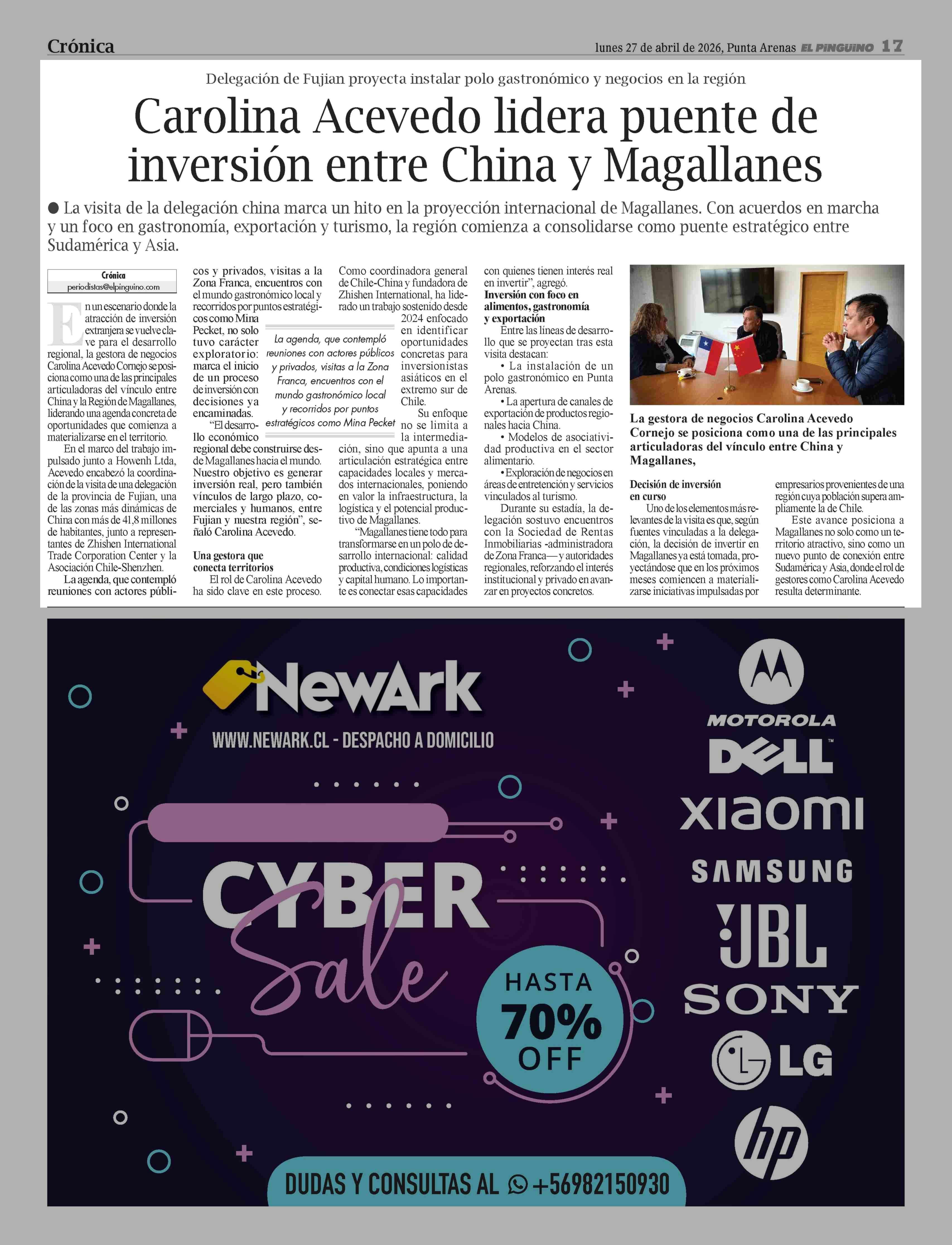 Carolina Acevedo lidera puente de inversión entre China y Magallanes 27-04-2026 El Pingüino |