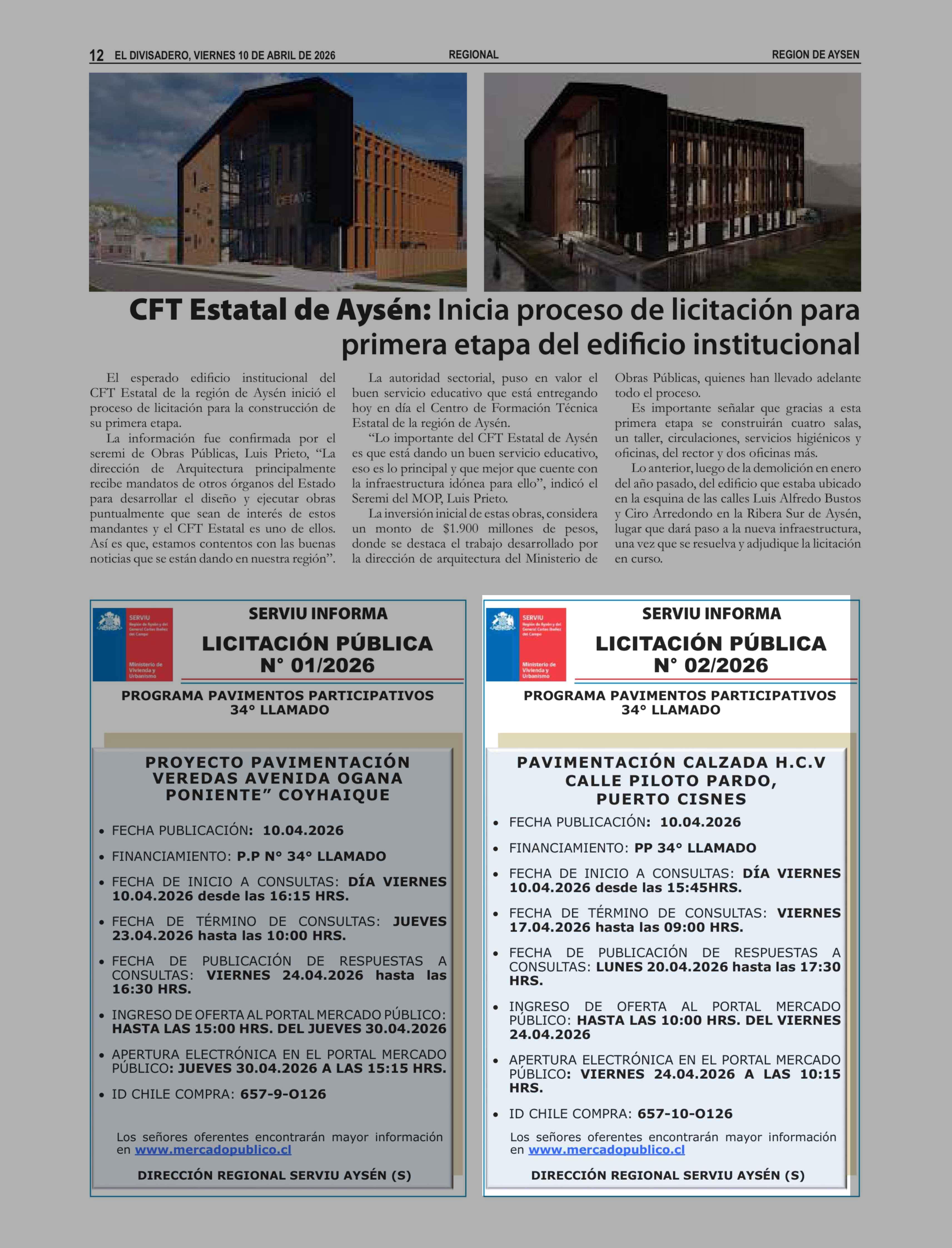 | Fecha: | 10-04-2026 | Sector: | Aviso Licitaciones | Región: | Región Aysén del General Carlos Ibáñez del Campo |