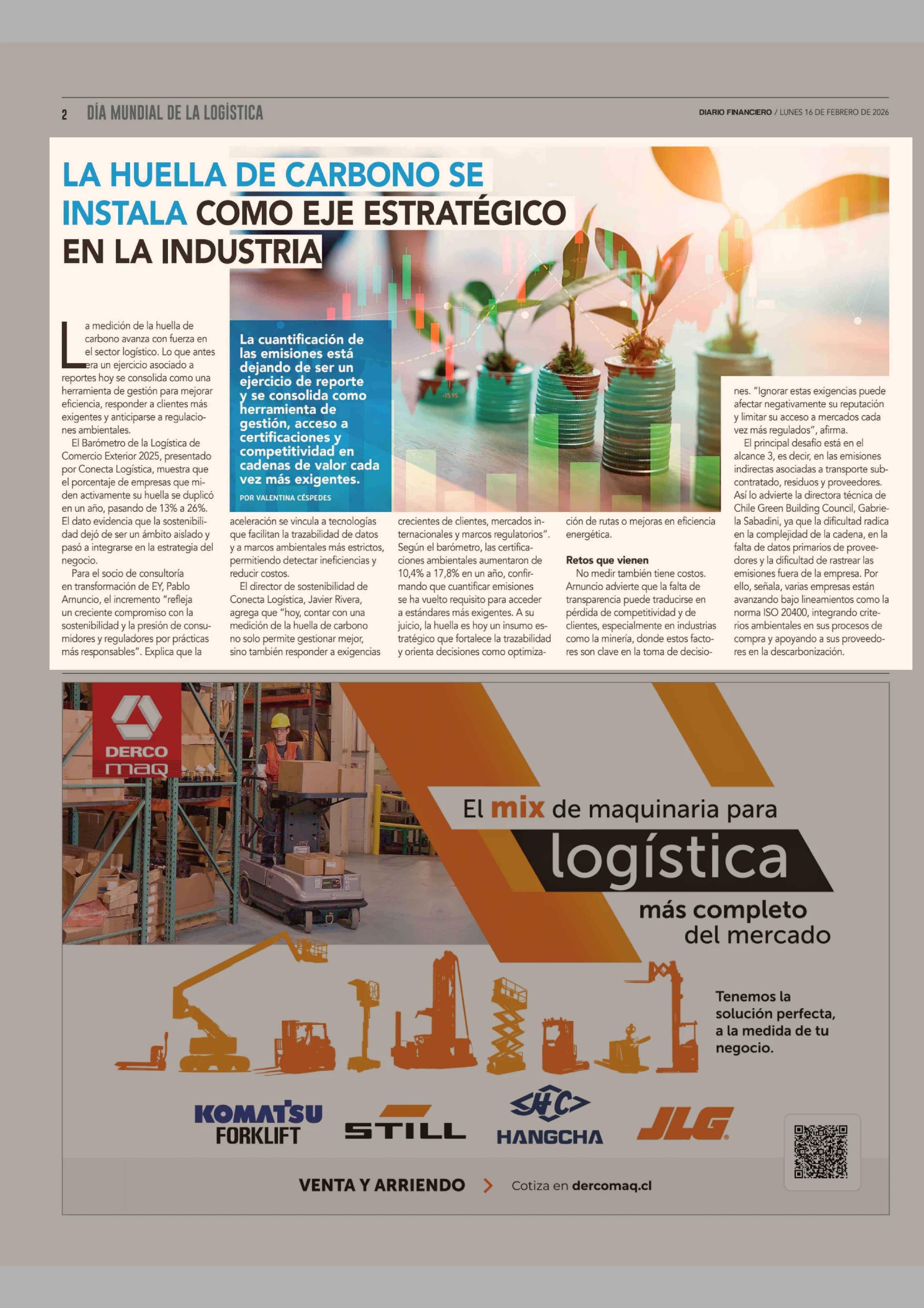 LA HUELLA DE CARBONO SE INSTALA COMO EJE ESTRATÉGICO EN LA INDUSTRIA 16-02-2026 Diario Financiero |