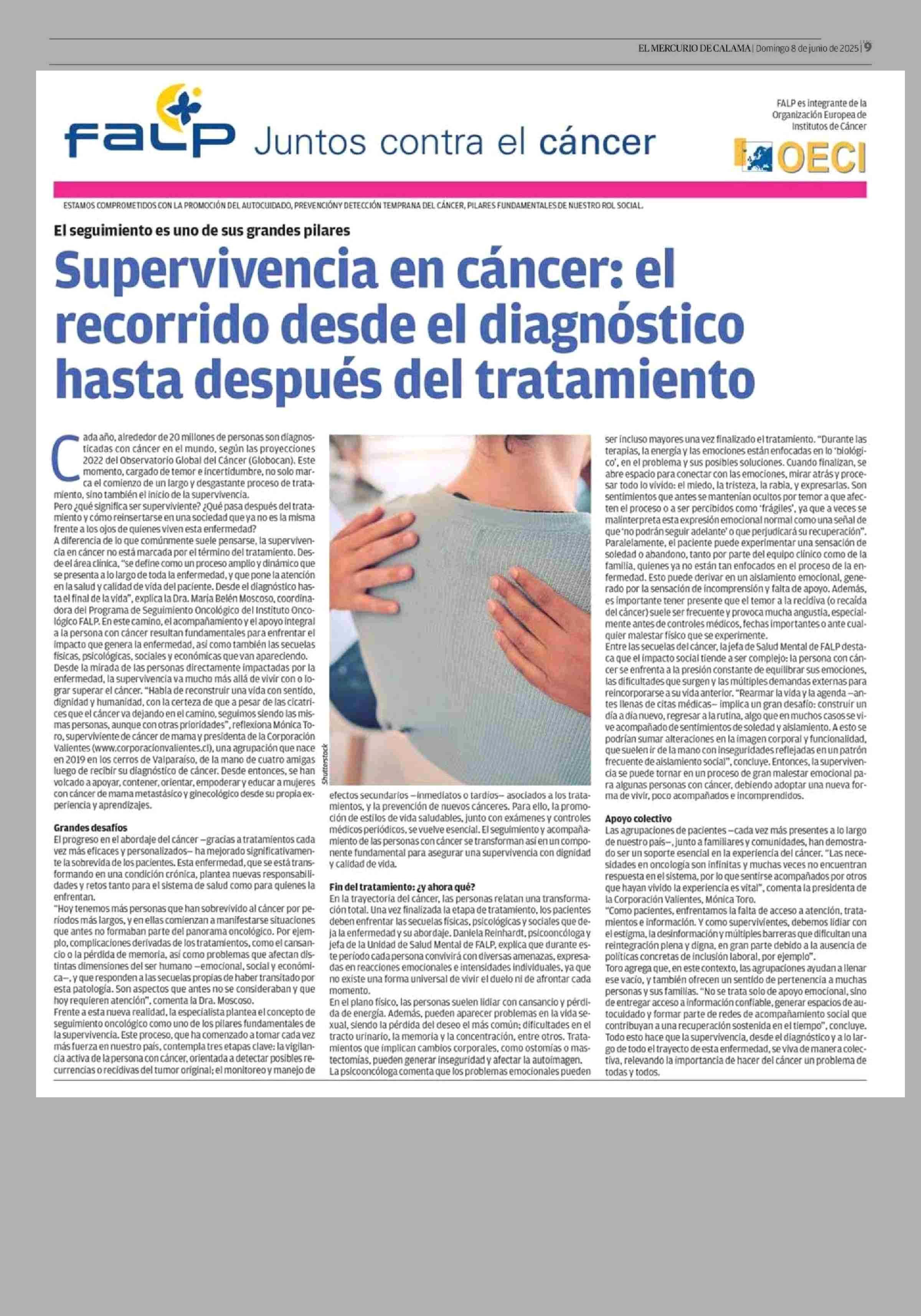 Supervivencia en cáncer: el recorrido desde el diagnóstico hasta después del tratamiento 08-06-2025 El Mercurio de Calama |