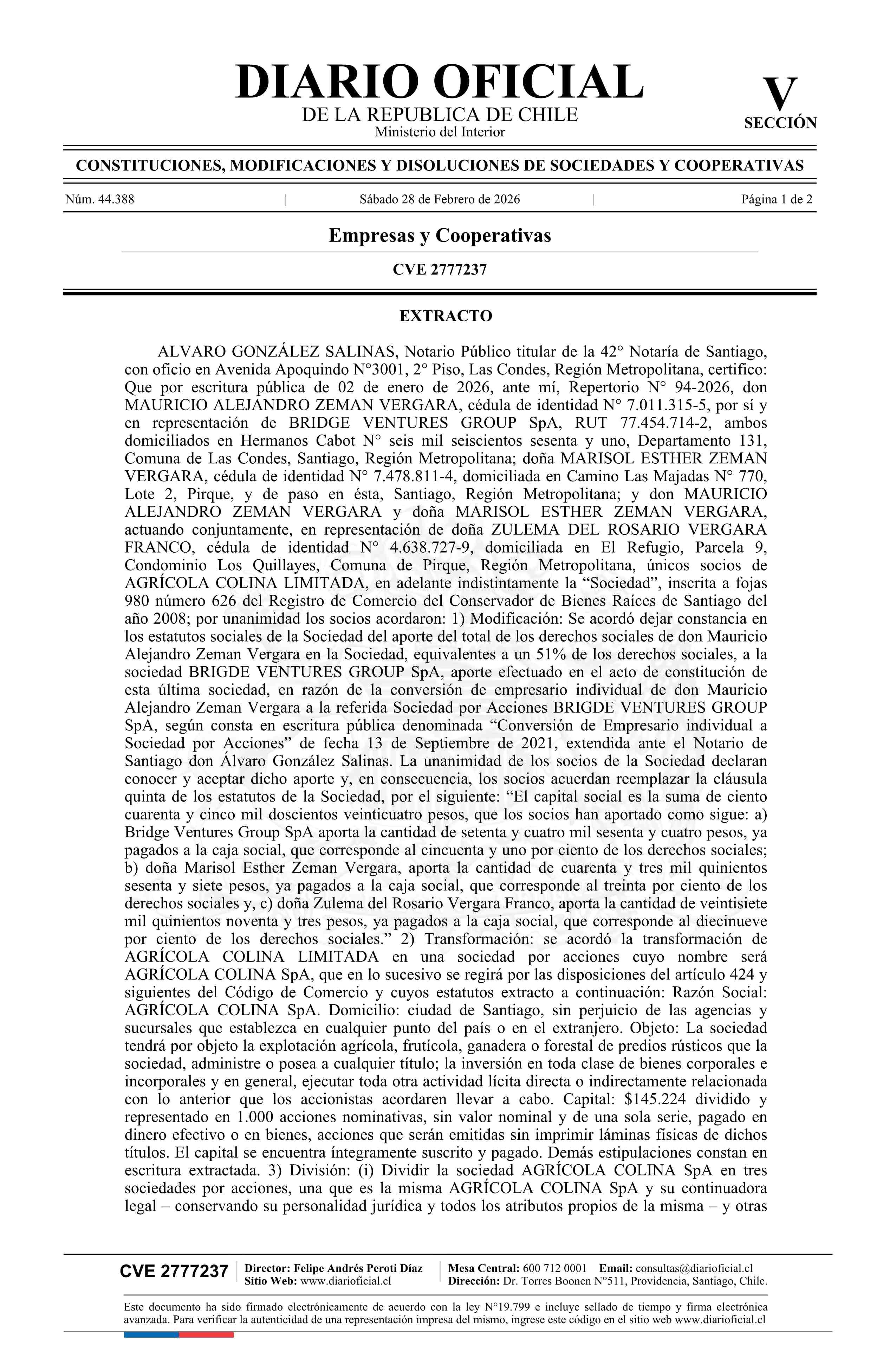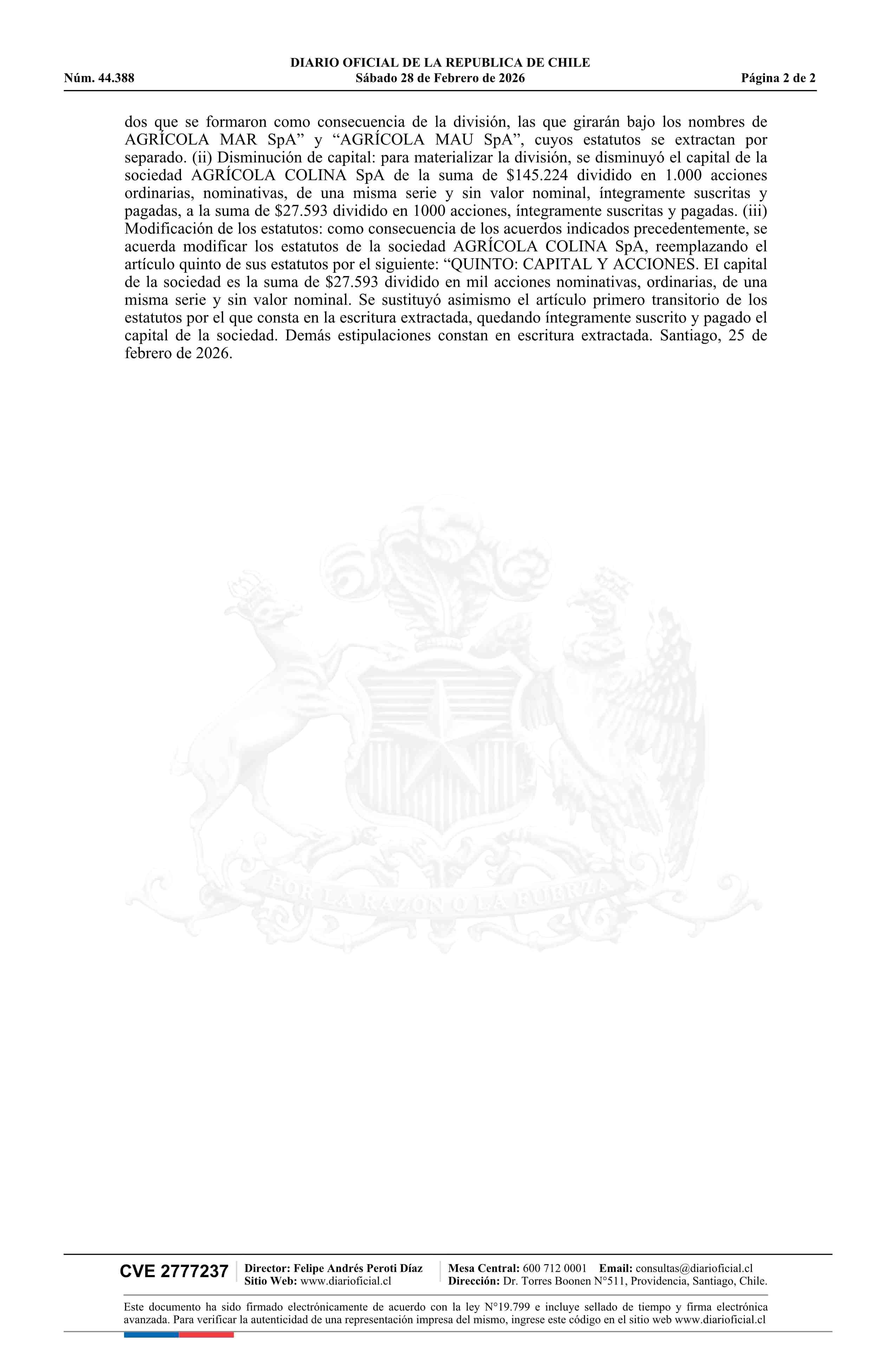 AGRÍCOLA COLINA LIMITADA 76.011.562-2 28-02-2026 Diario Oficial Edición Electrónica |