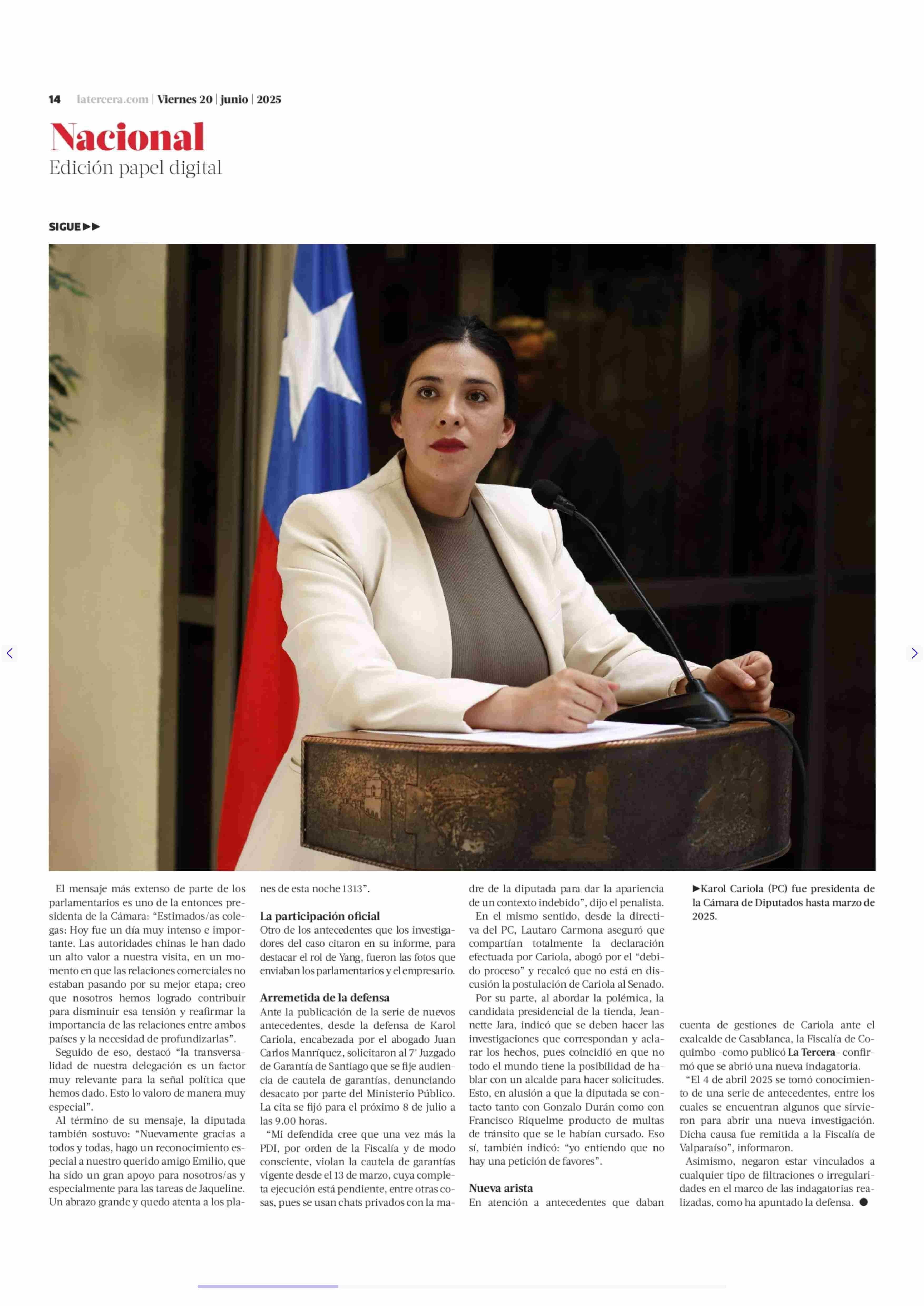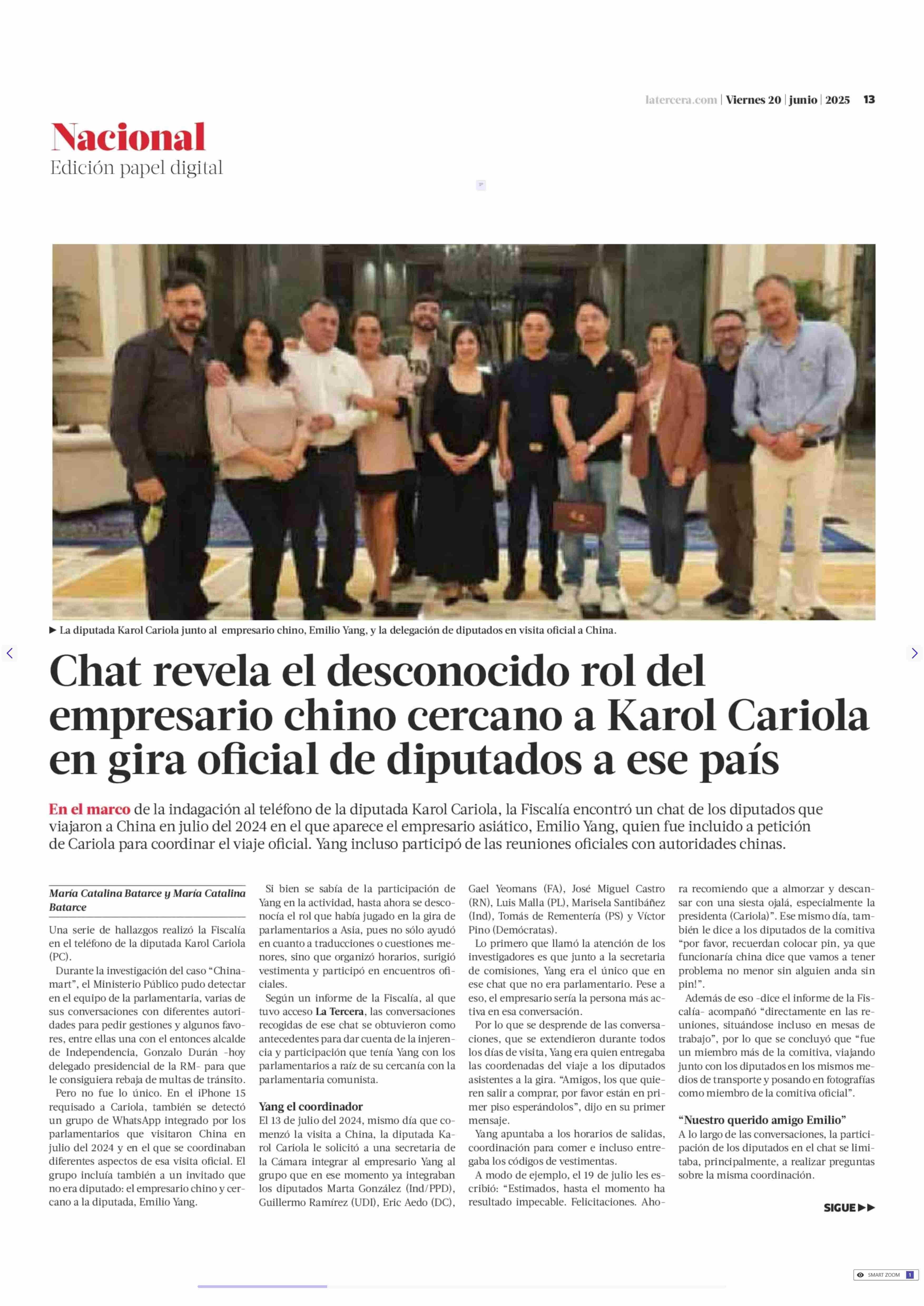 Título: Chat revela el desconocido rol del empresario chino cercano a Karol Cariola en gira oficial de diputados a ese país