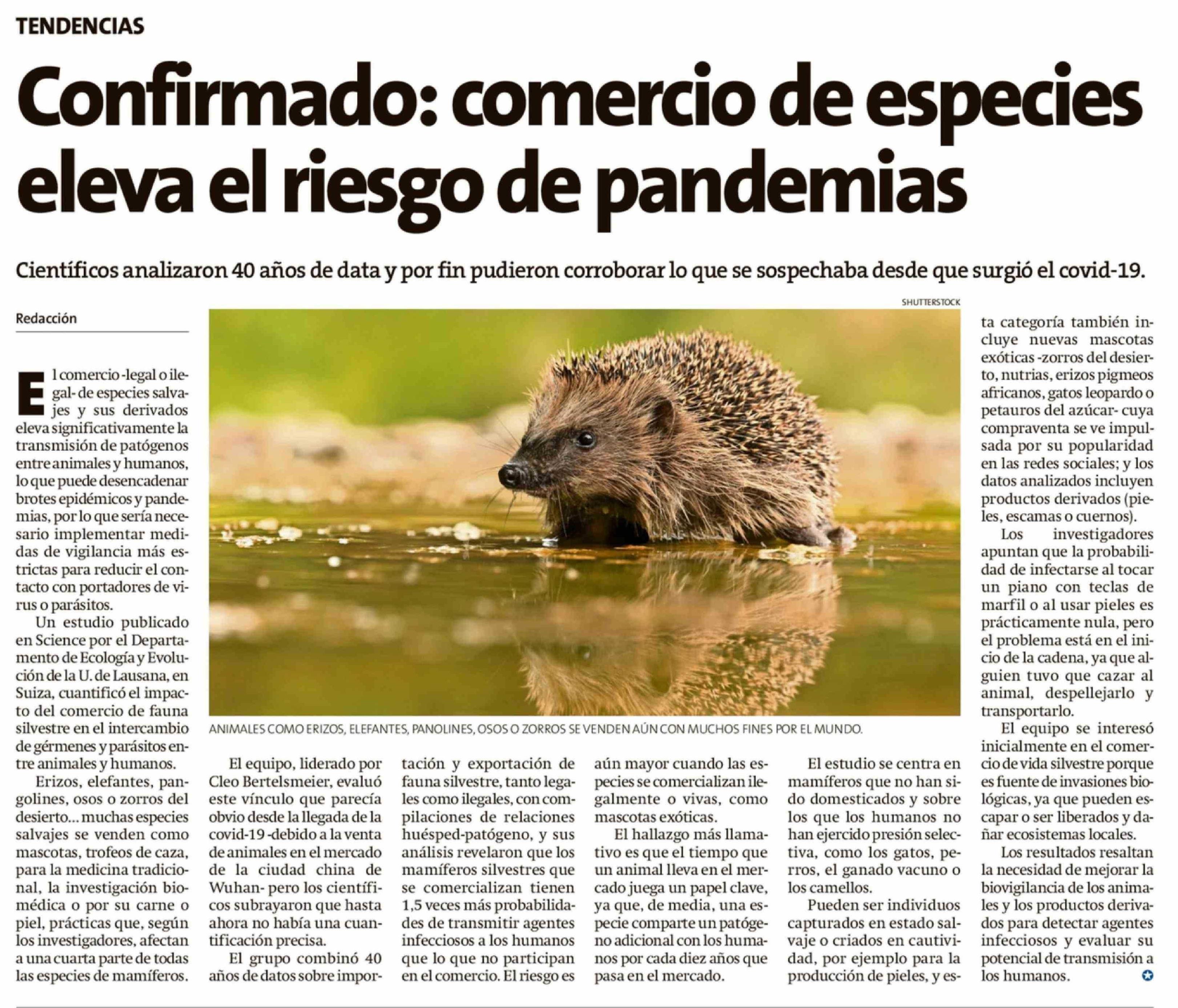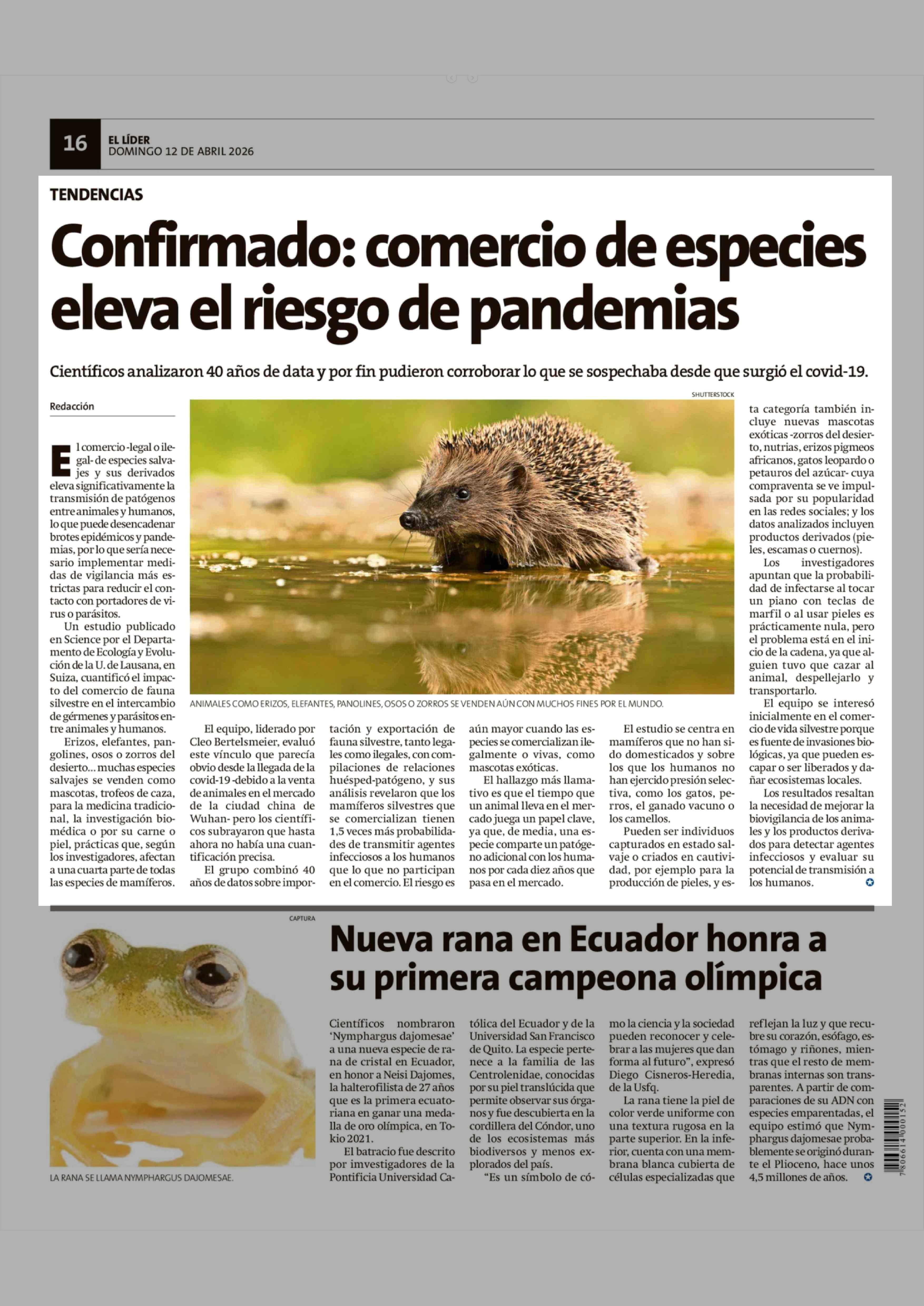 Confirmado: comercio de especies eleva el riesgo de pandemias 12-04-2026 El Líder |