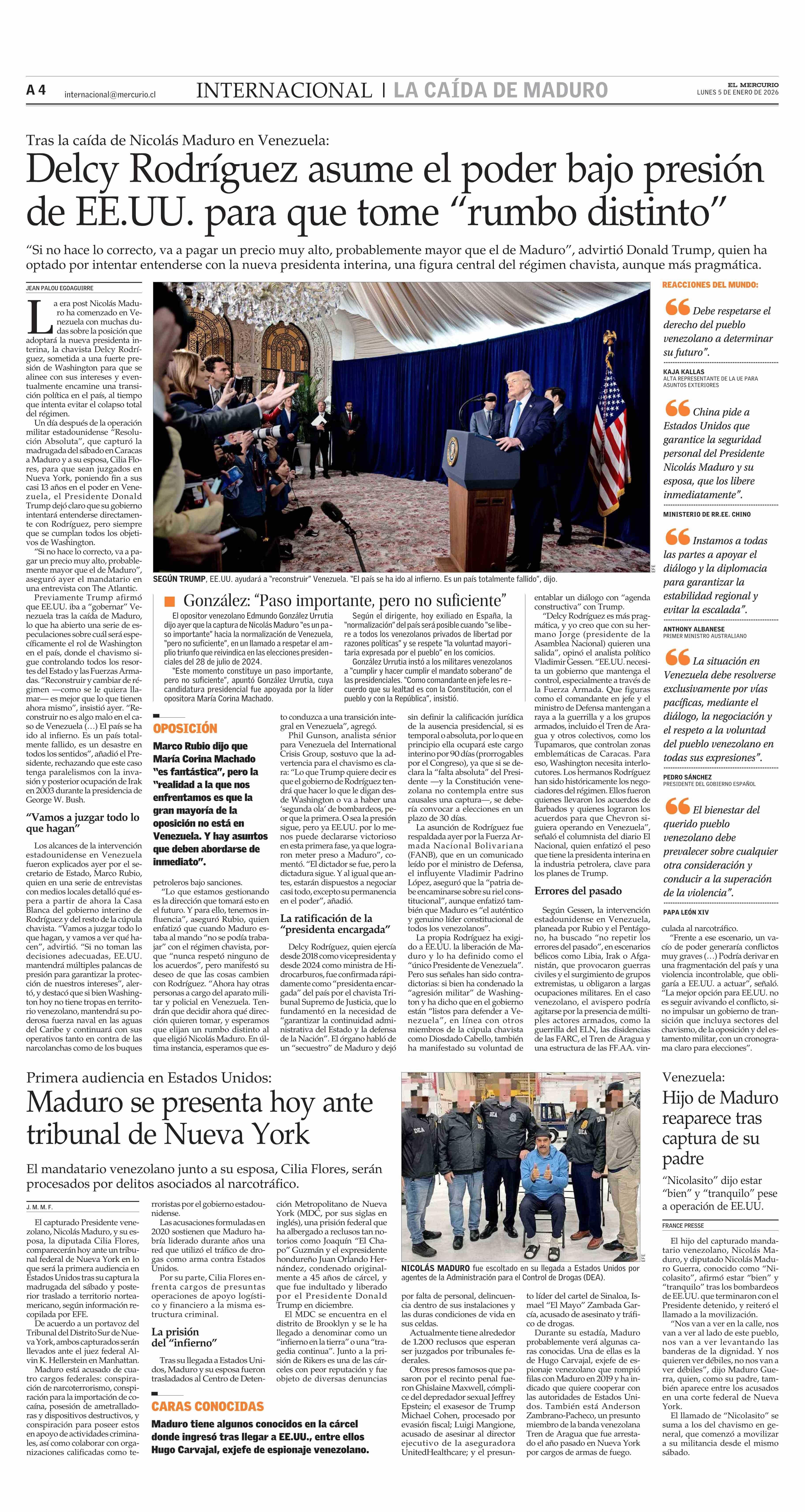 Delcy Rodríguez asume el poder bajo presión de EE.UU. para que tome “rumbo distinto” 05-01-2026 El Mercurio |