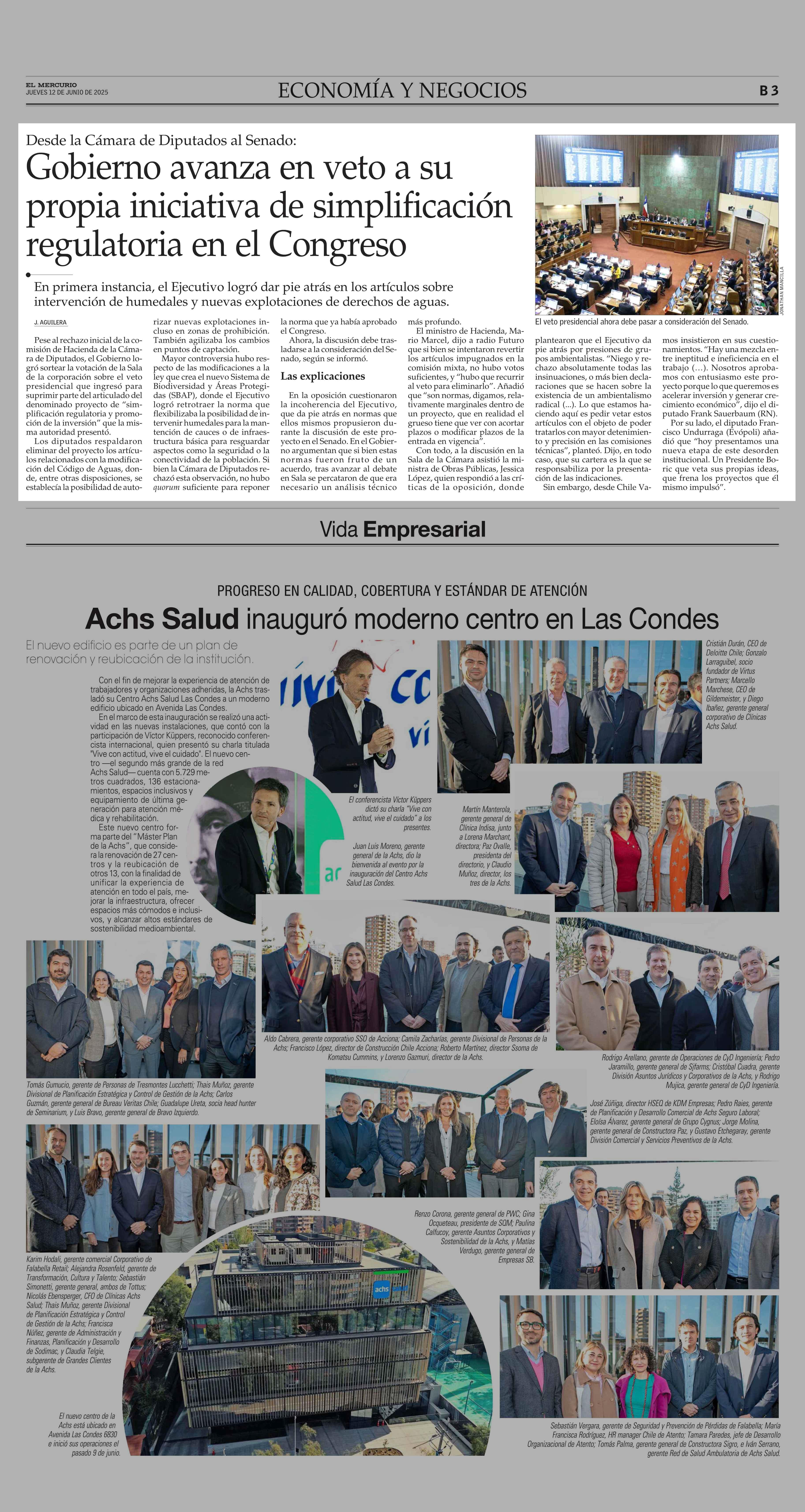 Gobierno avanza en veto a su propia iniciativa de simplificación regulatoria en el Congreso 12-06-2025 El Mercurio |