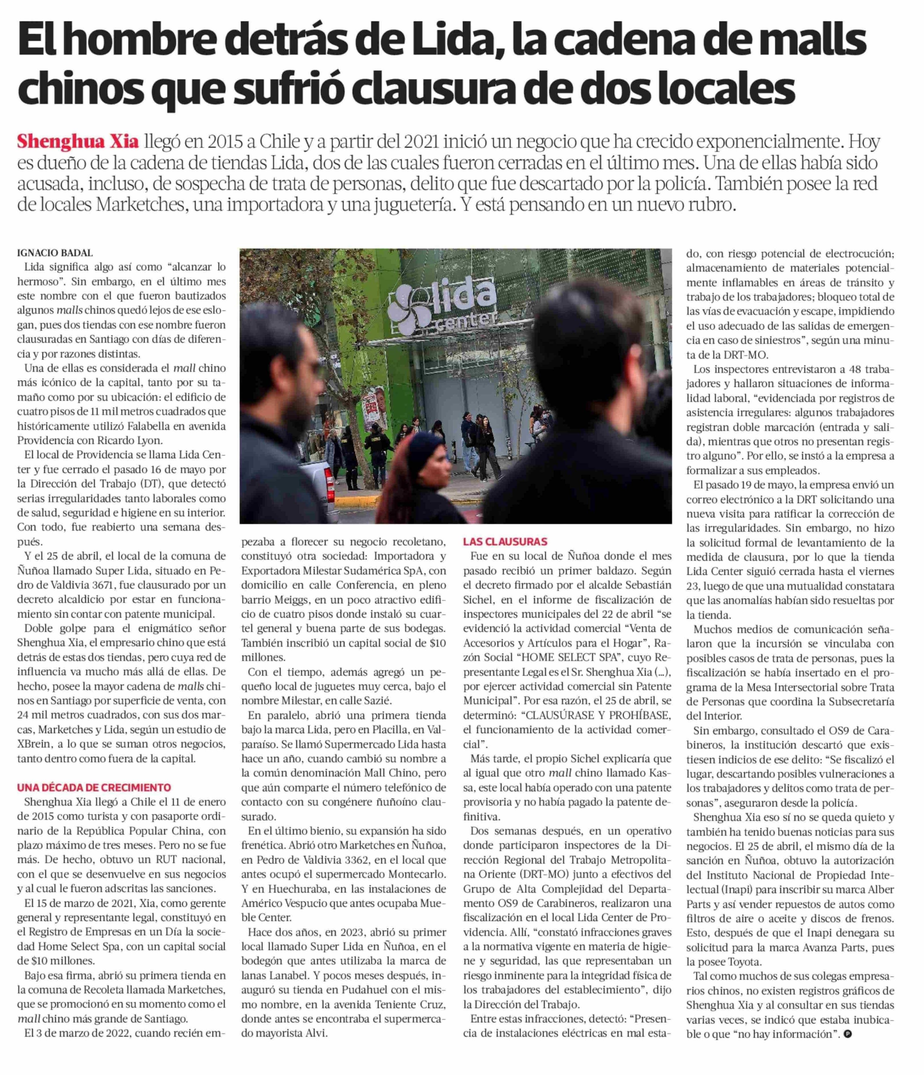 El hombre detrás de Lida, la cadena de malls chinos que sufrió clausura de dos locales 28-05-2025 La Tercera |