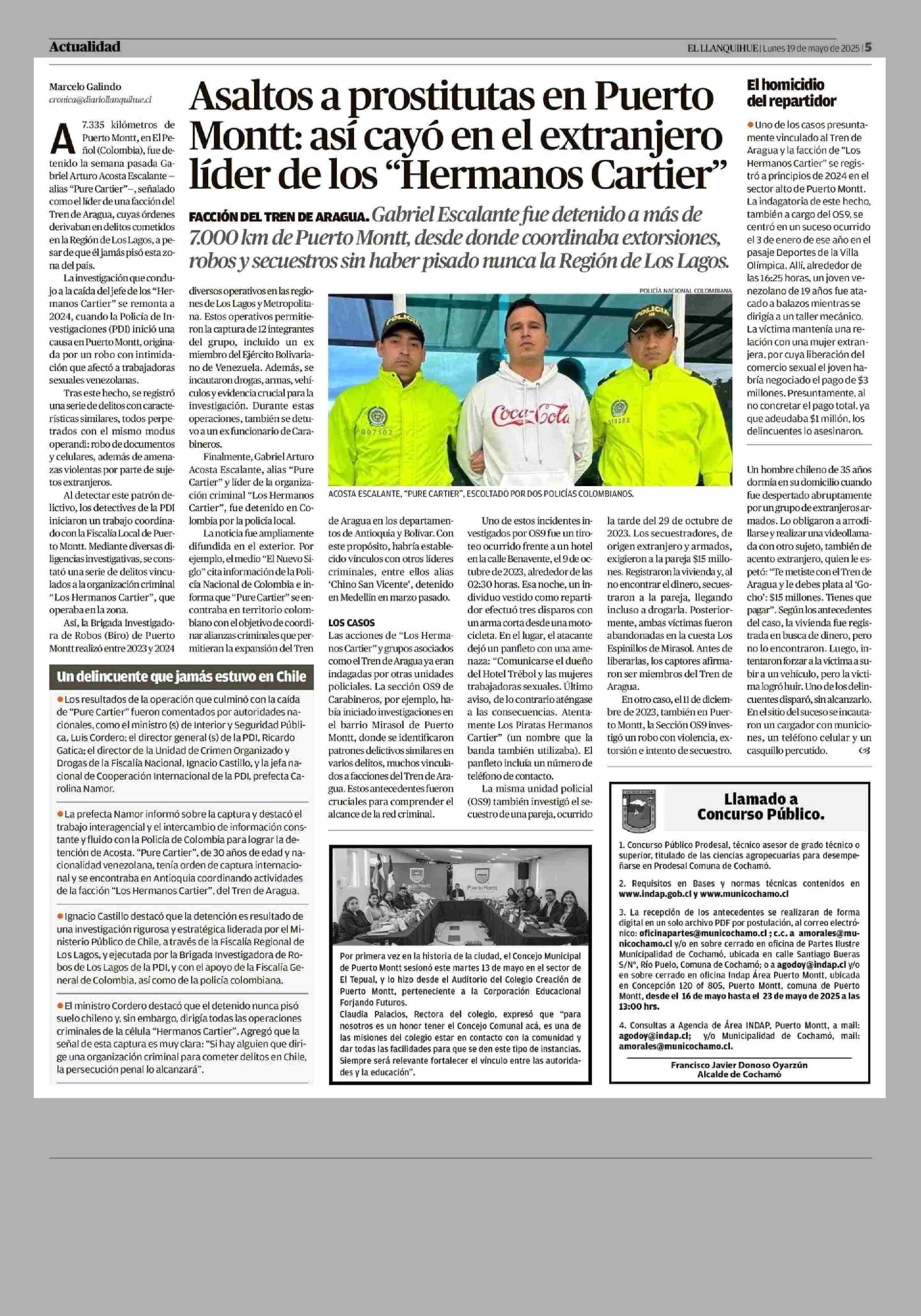 Asaltos a prostitutas en Puerto Montt: así cayó en el extranjero líder de los “Hermanos Cartier” 19-05-2025 El Llanquihue |