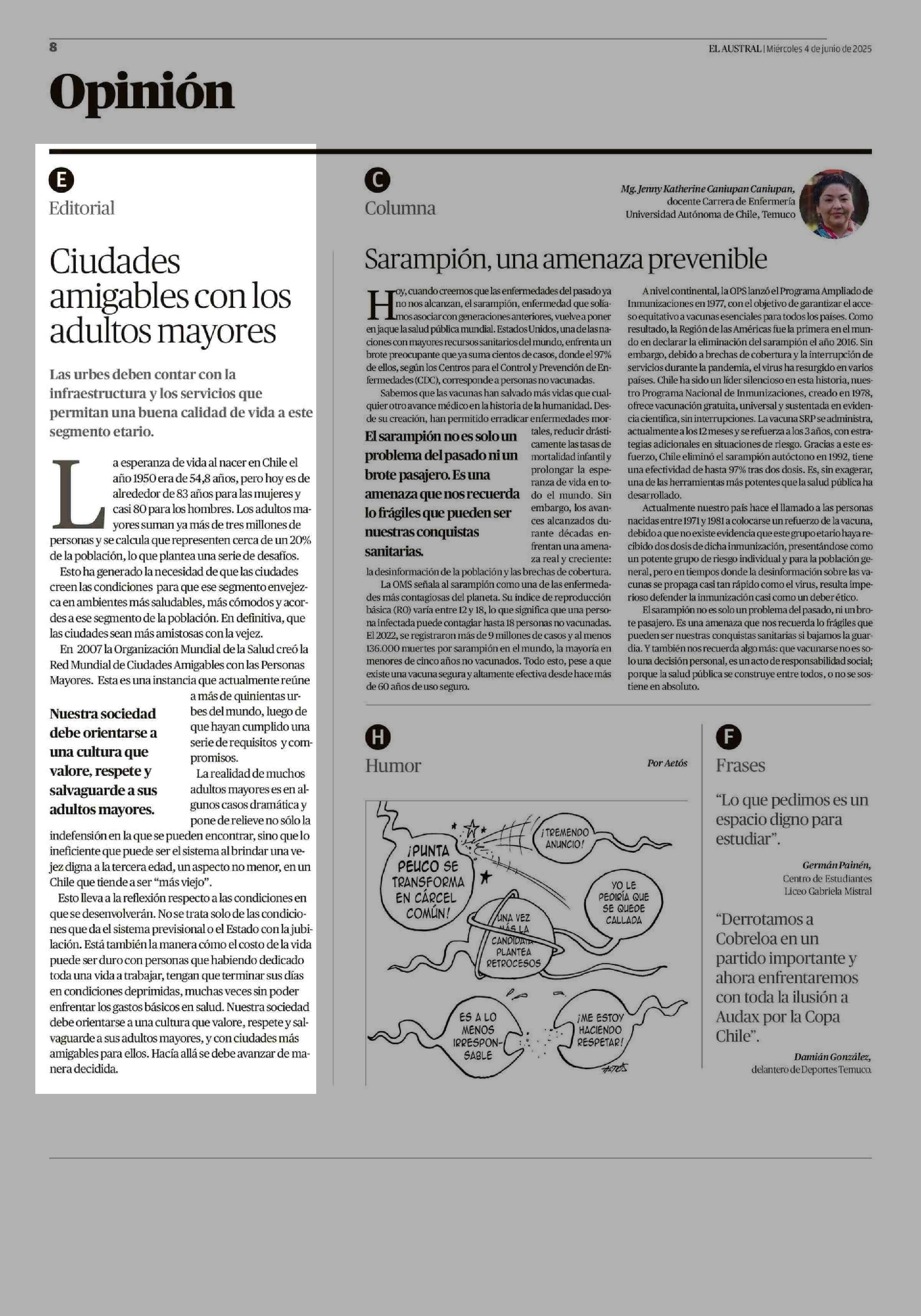 Editorial: Ciudades amigables con los adultos mayores 04-06-2025 El Austral de la Araucanía |