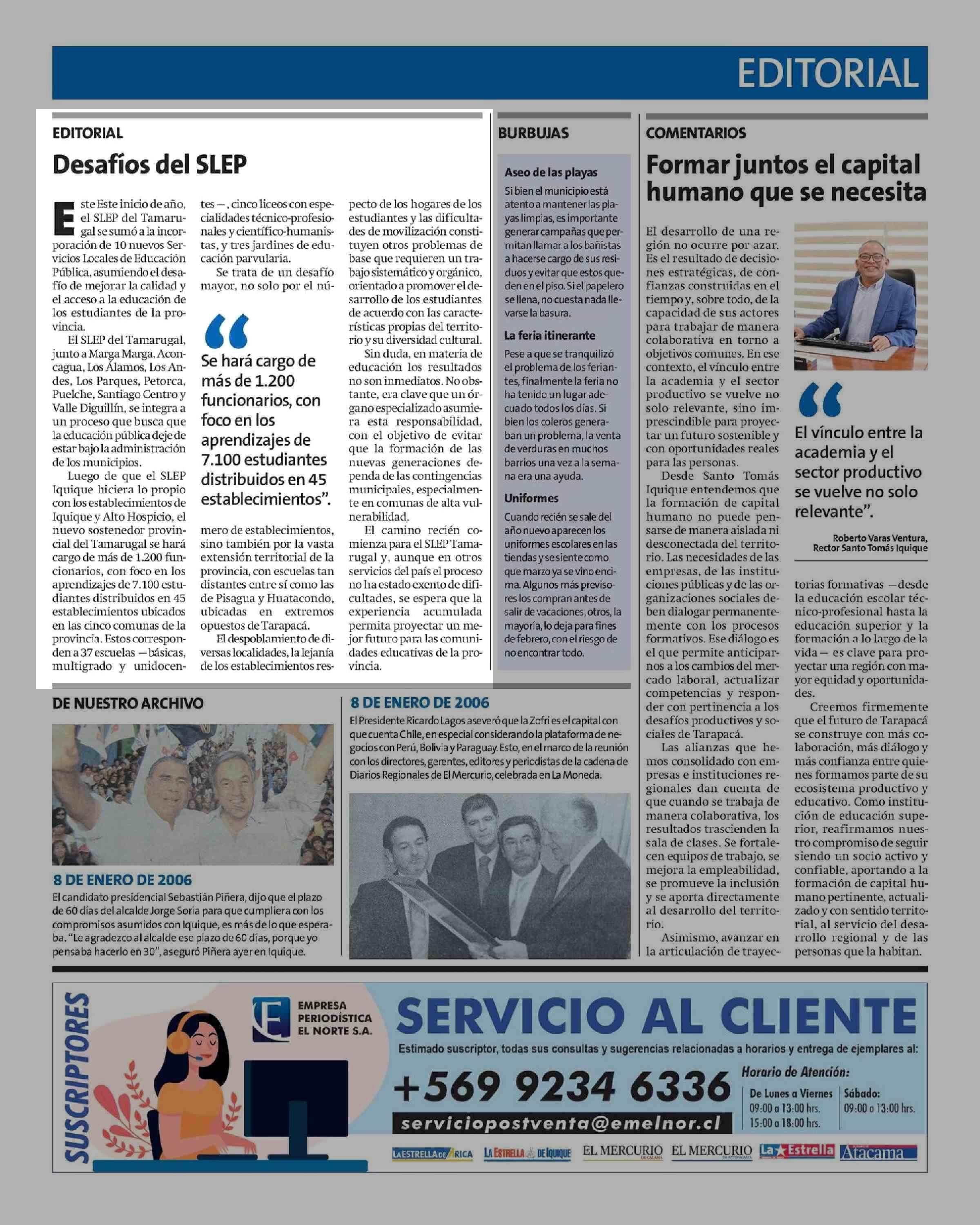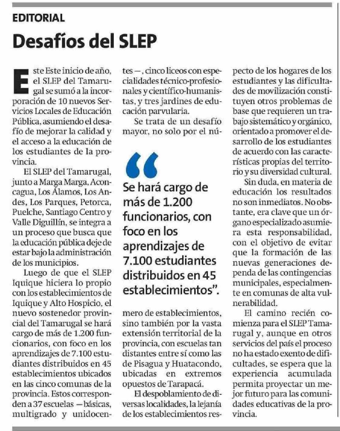 Editorial: Desafíos del SLEP 08-01-2026 La Estrella de Iquique |