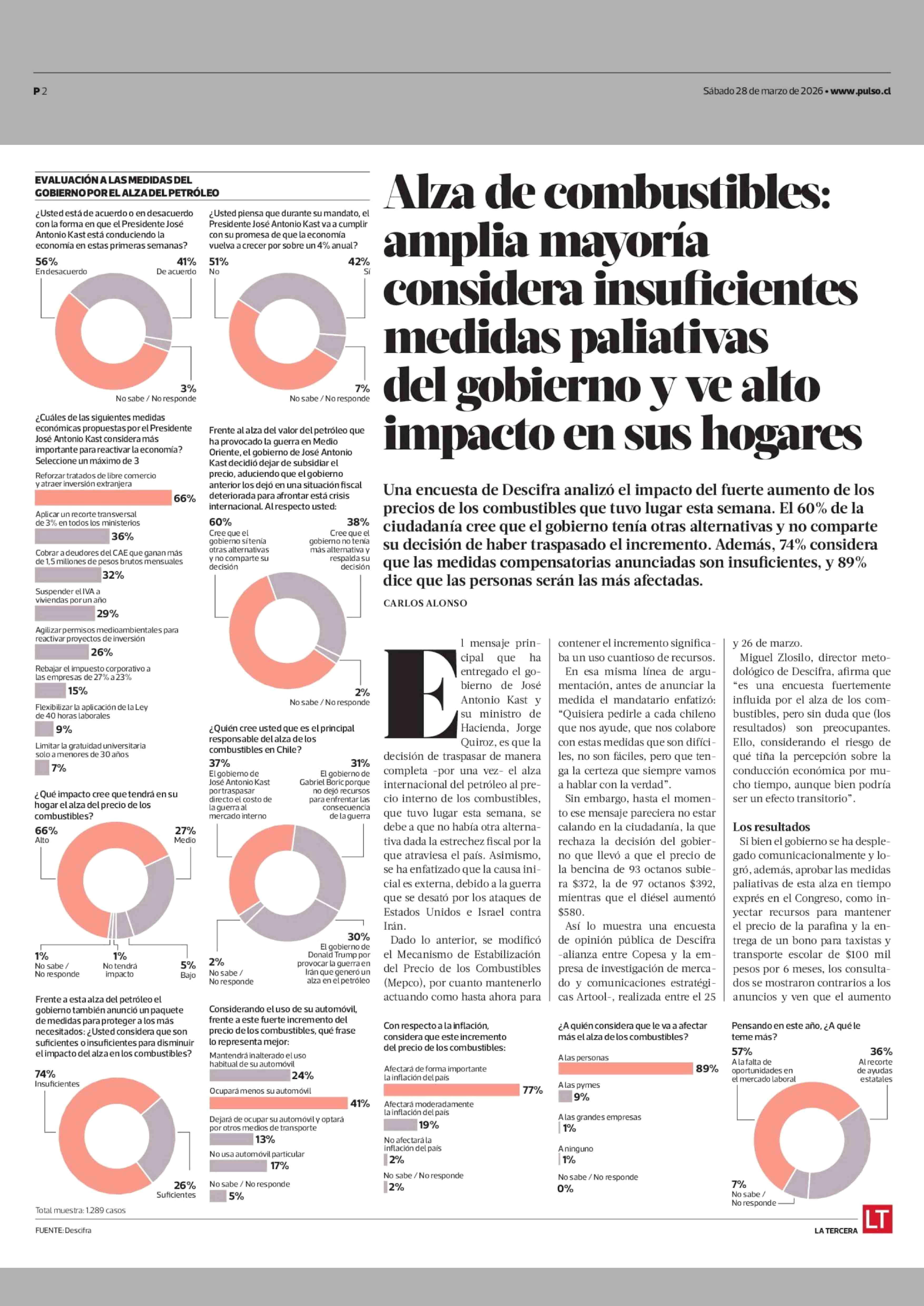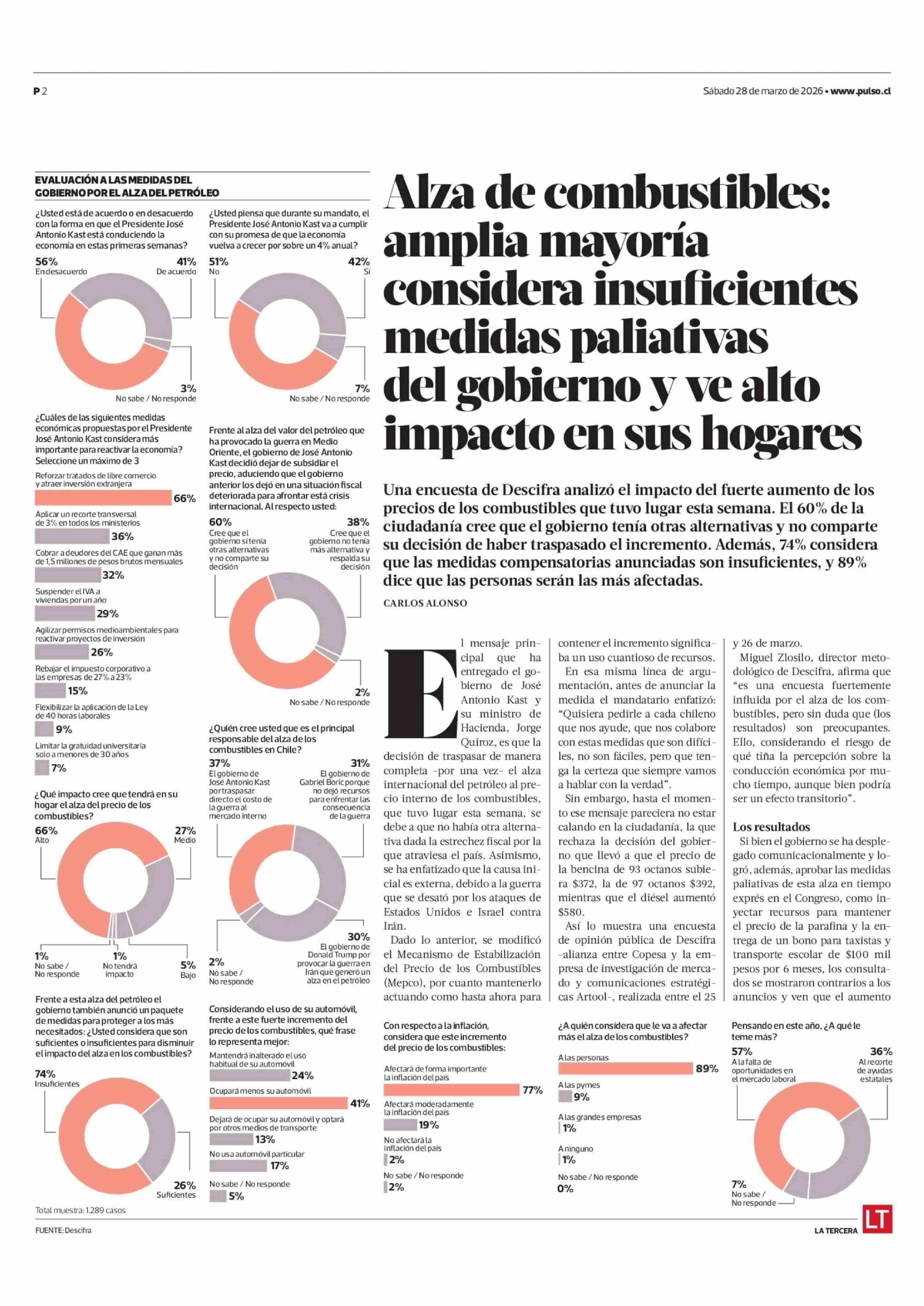 Título: Alza de combustibles: amplia mayoría considera insuficientes medidas paliativas del gobierno y ve alto impacto en sus hogares