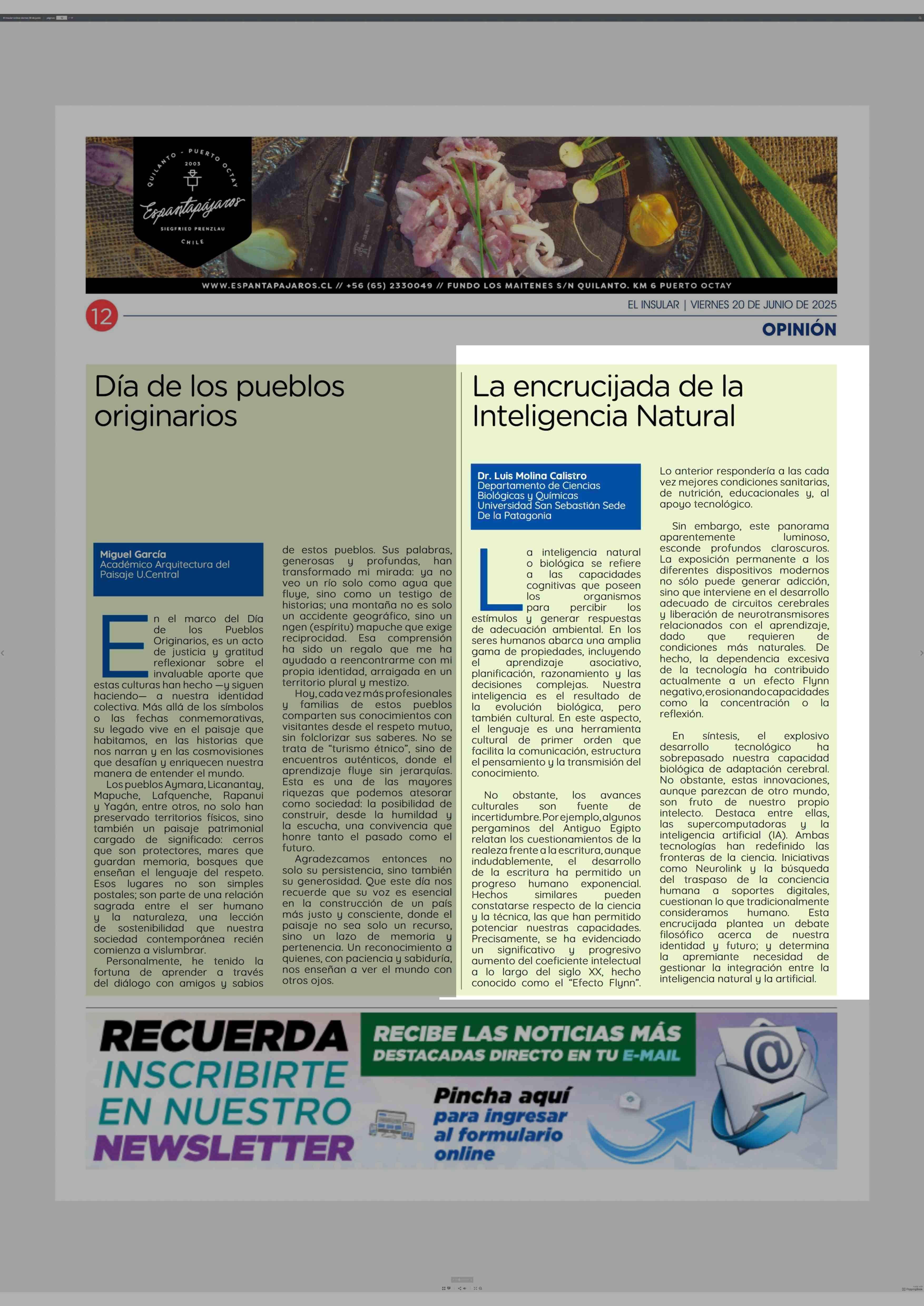 COLUMNAS DE OPINIÓN: La encrucijada de la Inteligencia Natural 20-06-2025 El Insular |