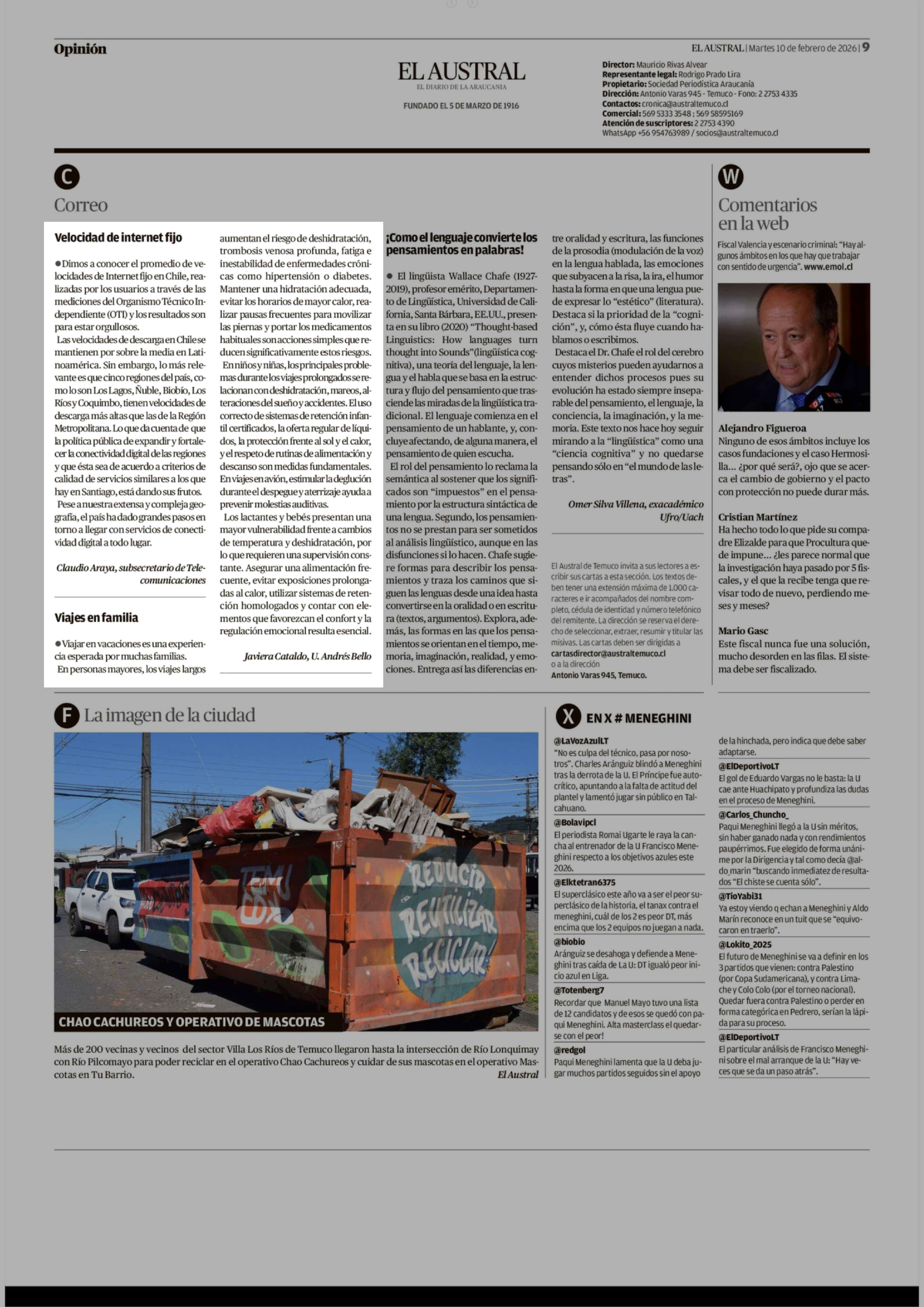 Cartas: Viajes en familia 10-02-2026 El Austral de la Araucanía |