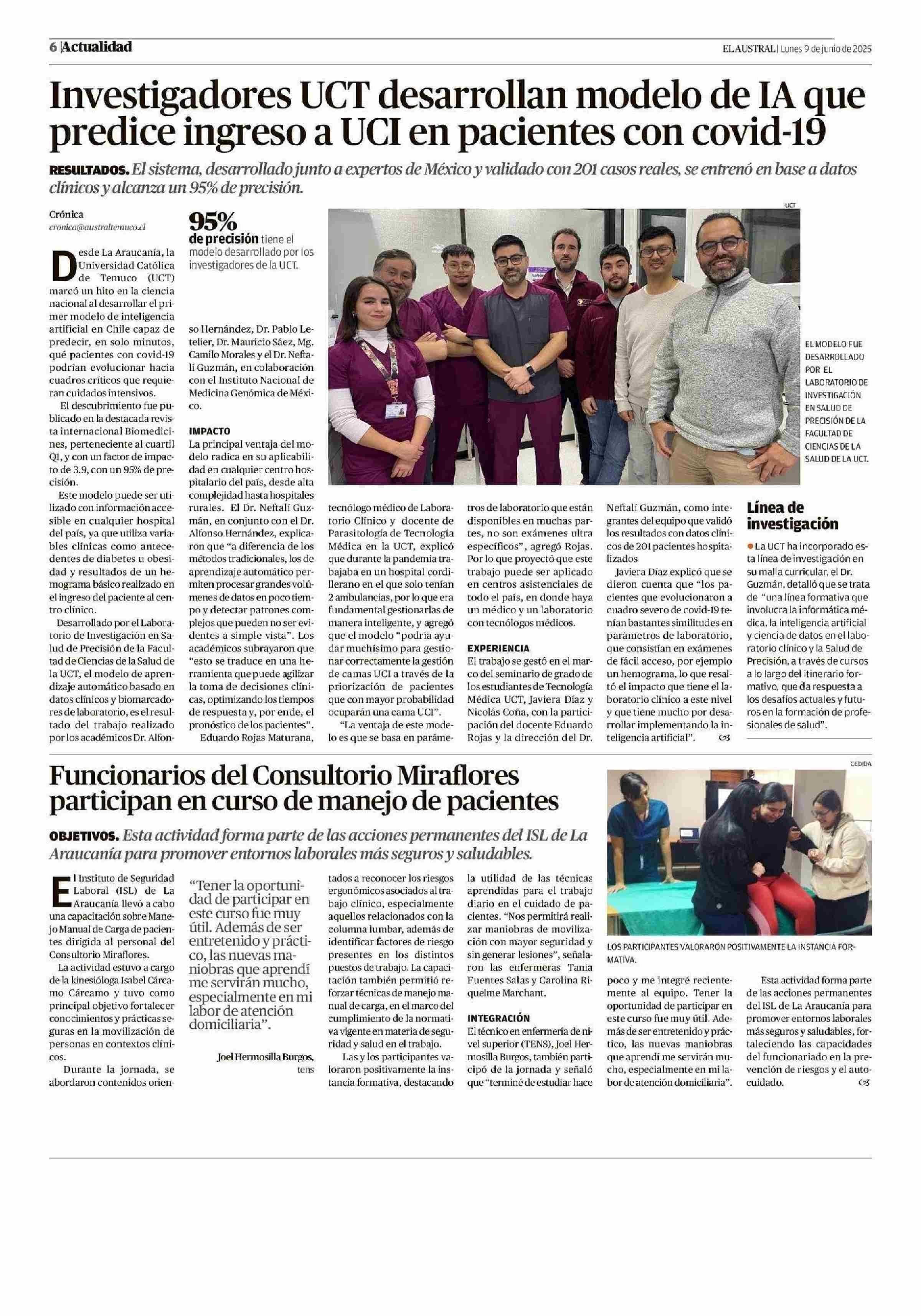 Investigadores UCT desarrollan modelo de IA que predice ingreso a UCI en pacientes con covid-19 09-06-2025 El Austral de la Araucanía |