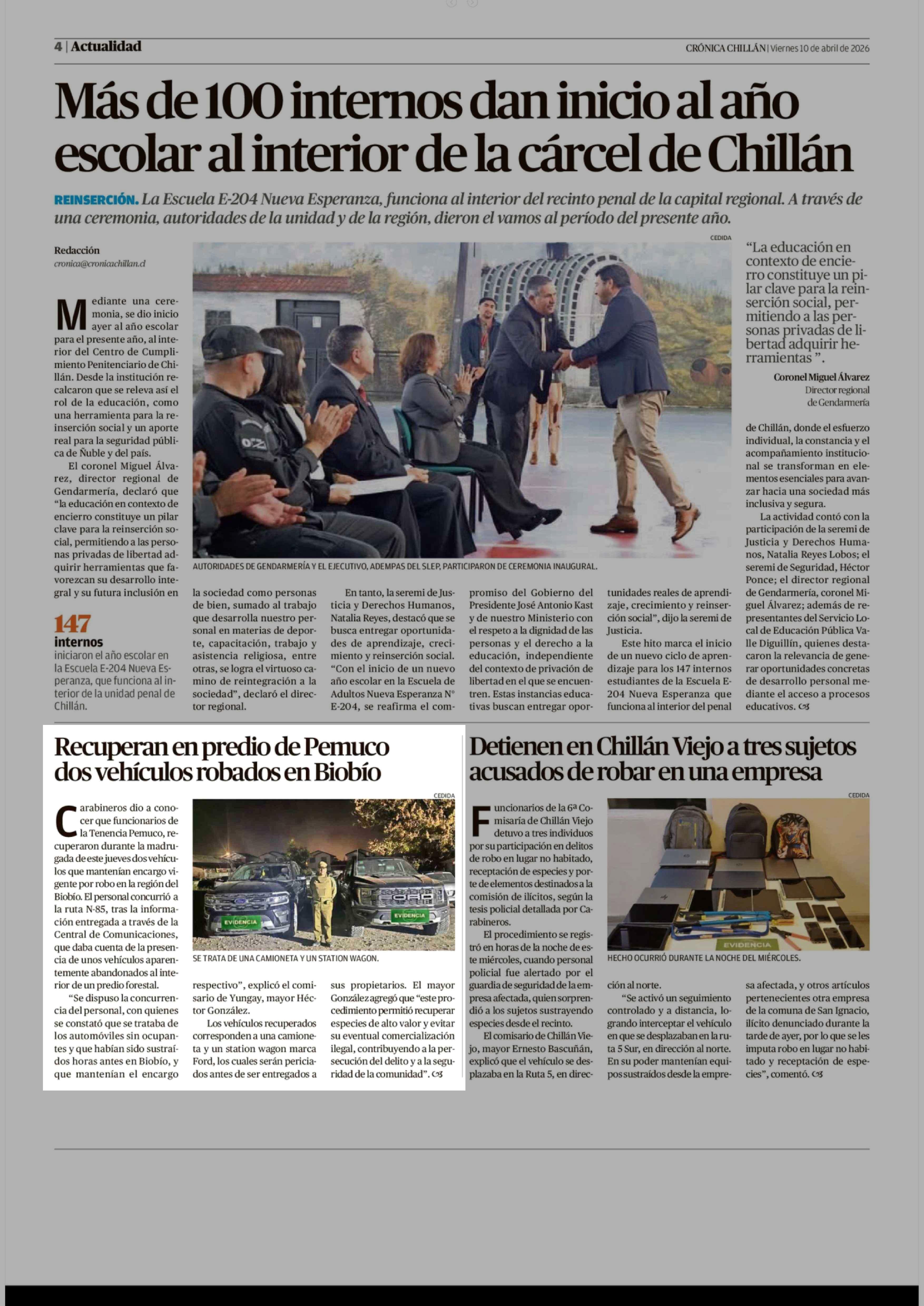 | Fecha: | 10-04-2026 | Sector: | Noticia general | Región: | Región del Ñuble |