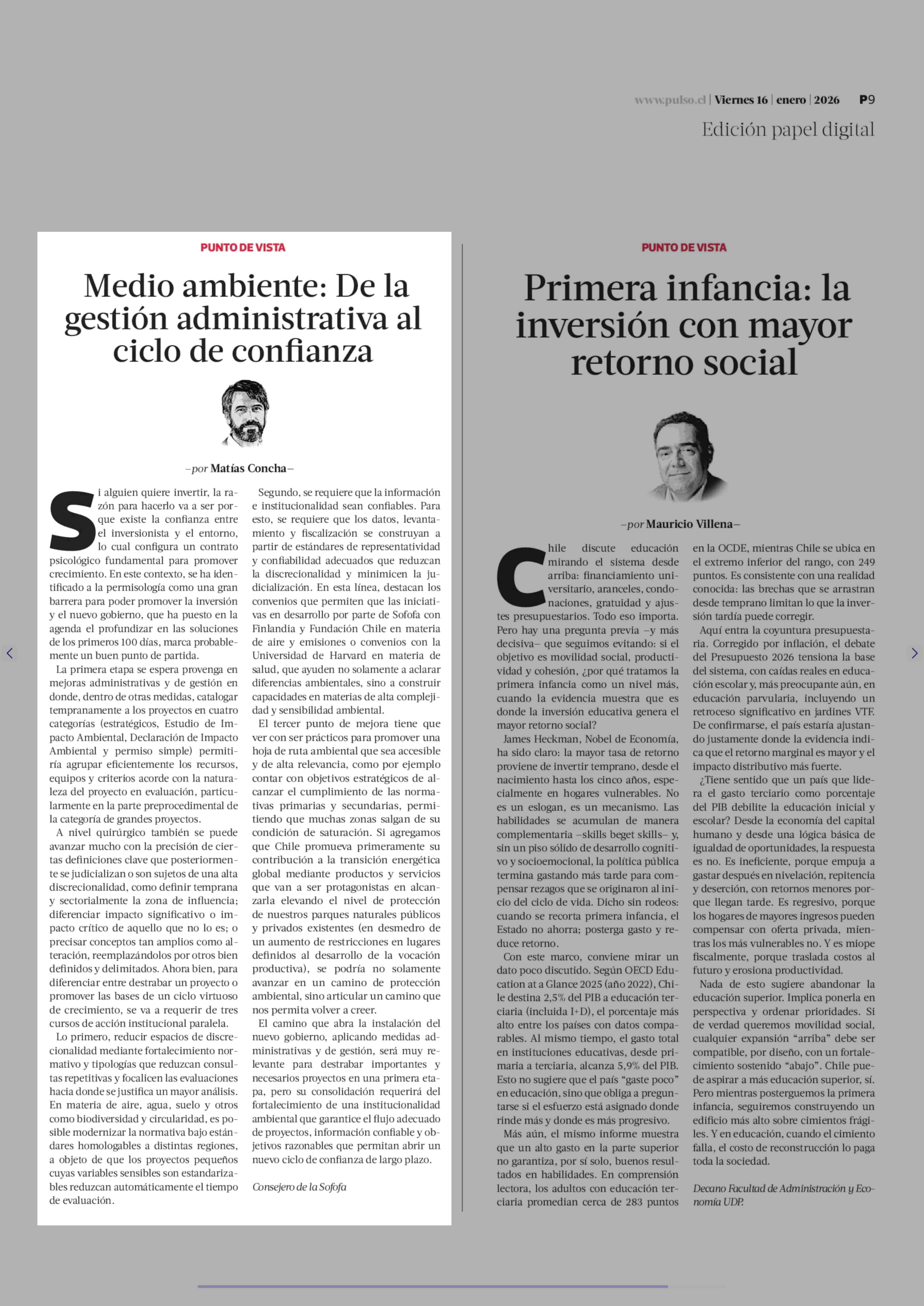 Columnas de Opinión: Medio ambiente: De la gestión administrativa al ciclo de confianza 16-01-2026 La Tercera |