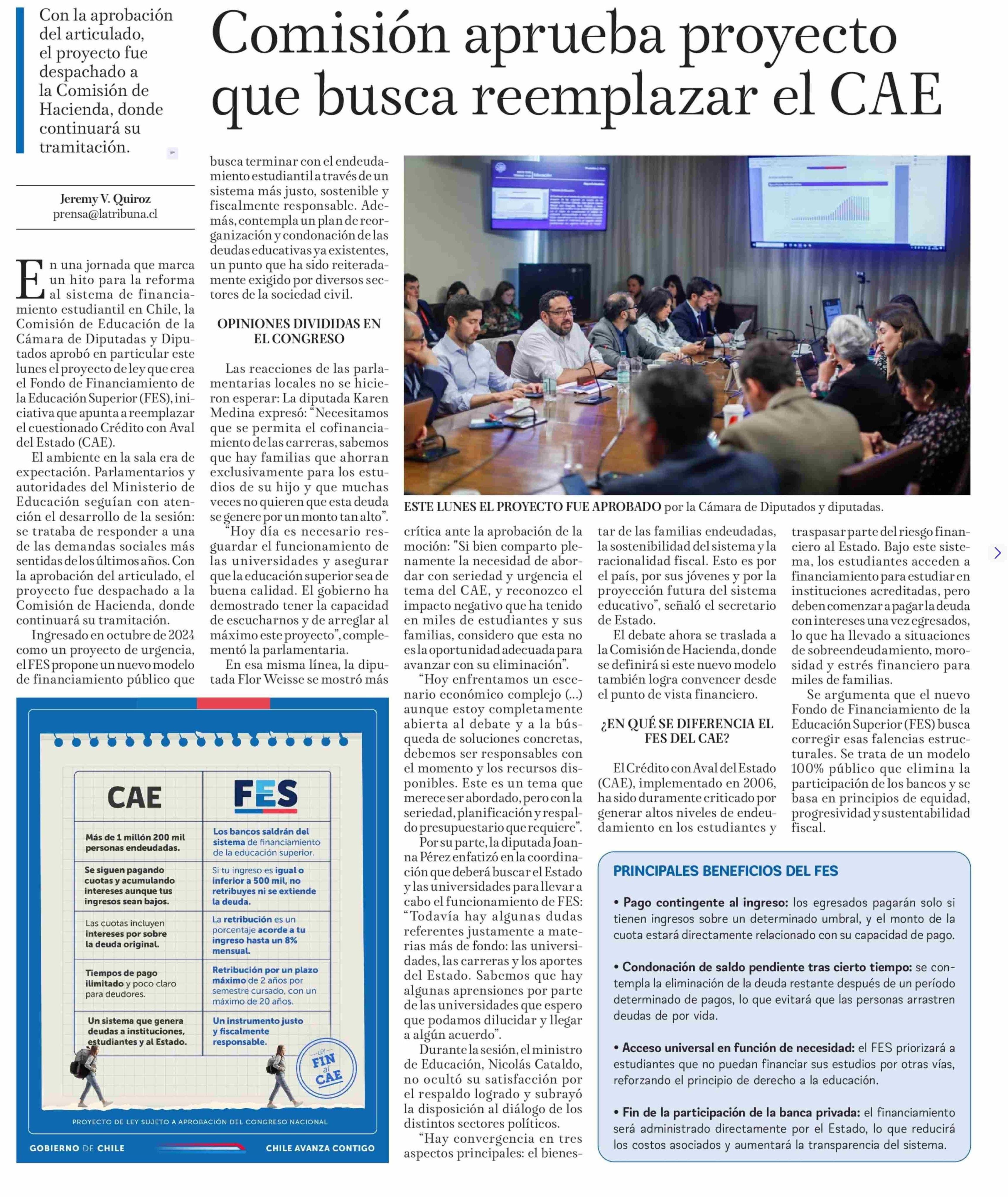 Comisión aprueba proyecto que busca reemplazar el CAE 23-04-2025 La Tribuna |