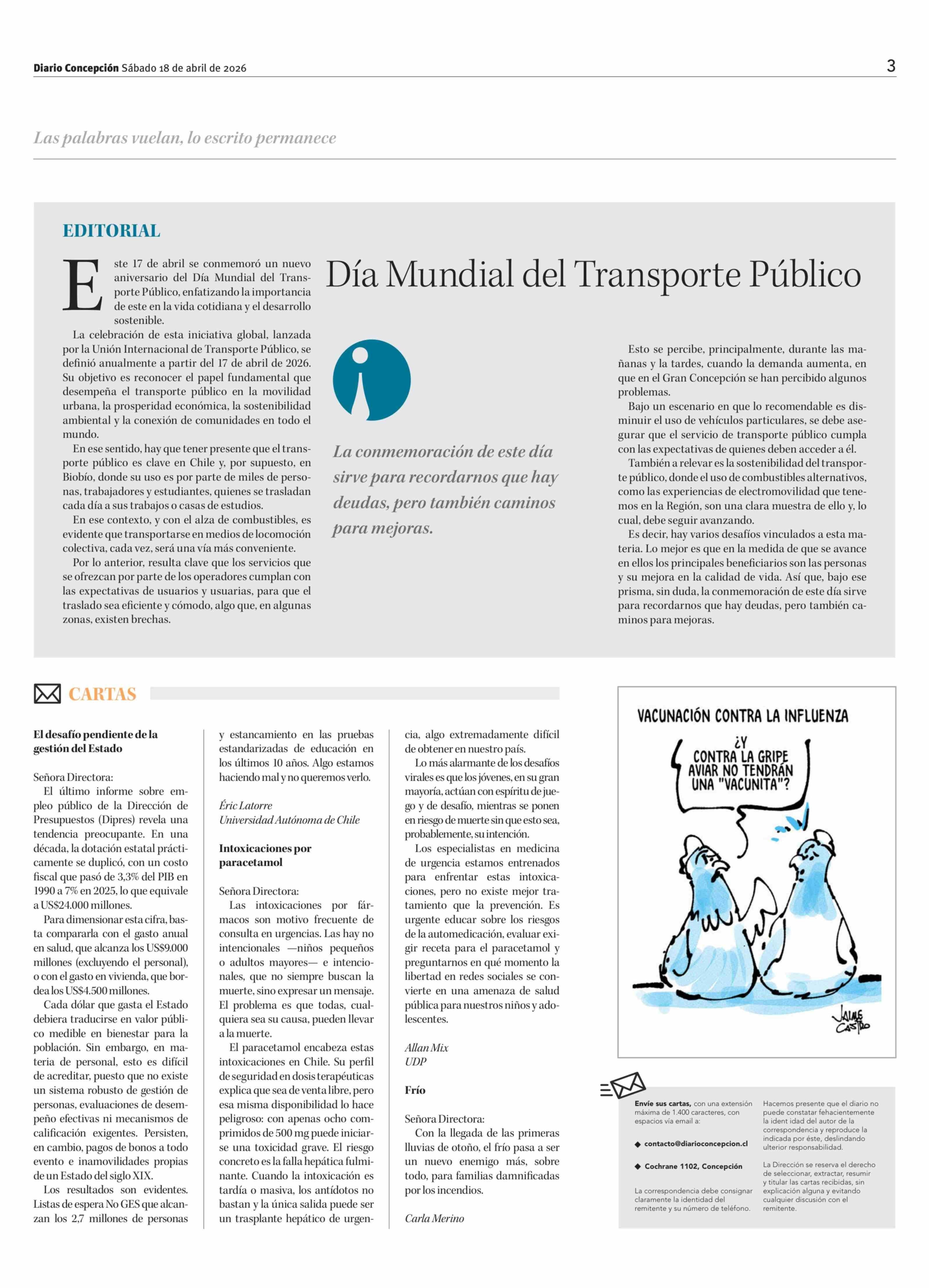 Editorial: Día Mundial del Transporte Público 18-04-2026 Diario Concepción |