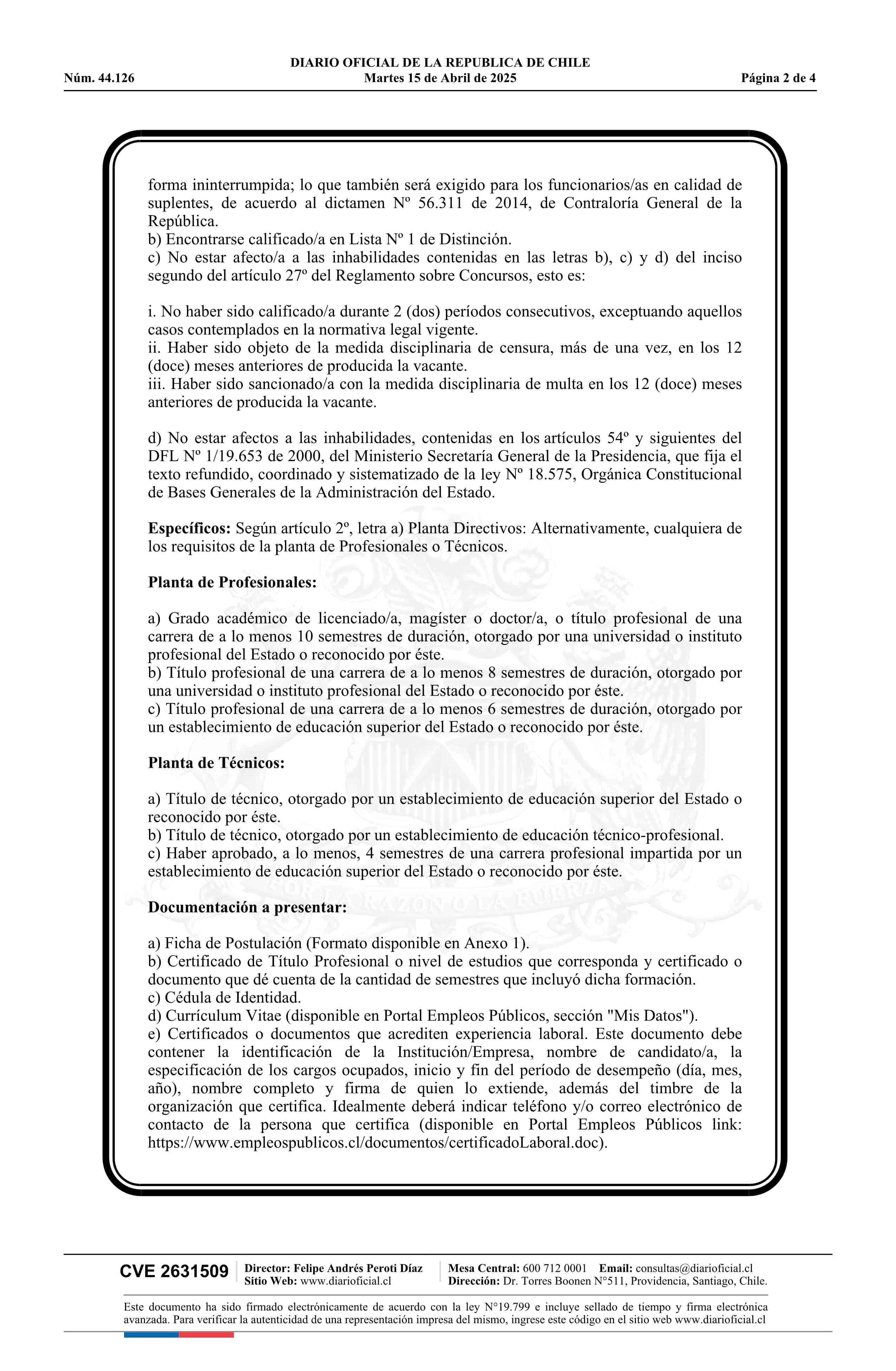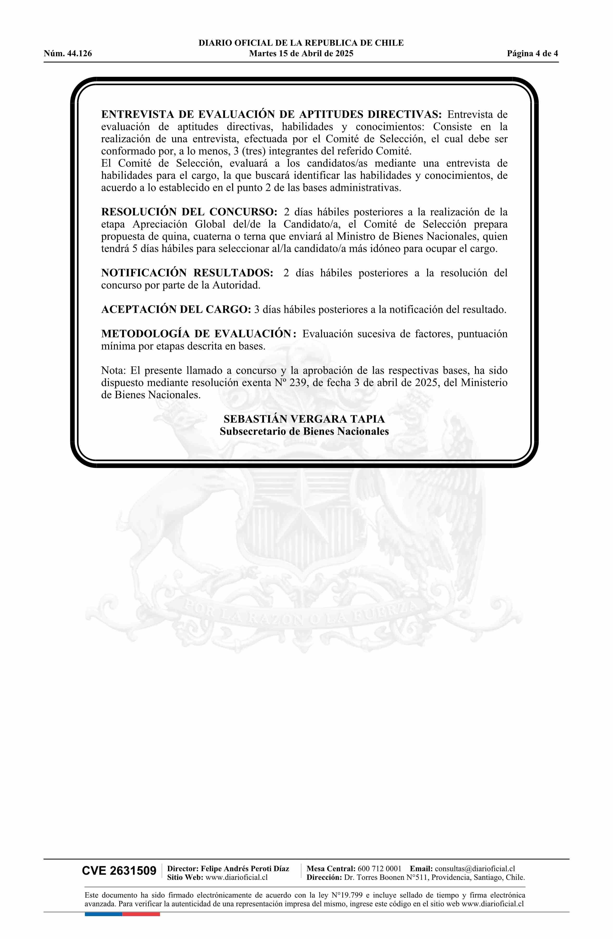 AVISO LICITACIONES: Llama a concurso para provisión de cargo Jefe/a Departamento de Enajenación de Bienes 15-04-2025 Diario Oficial Edición Electrónica |