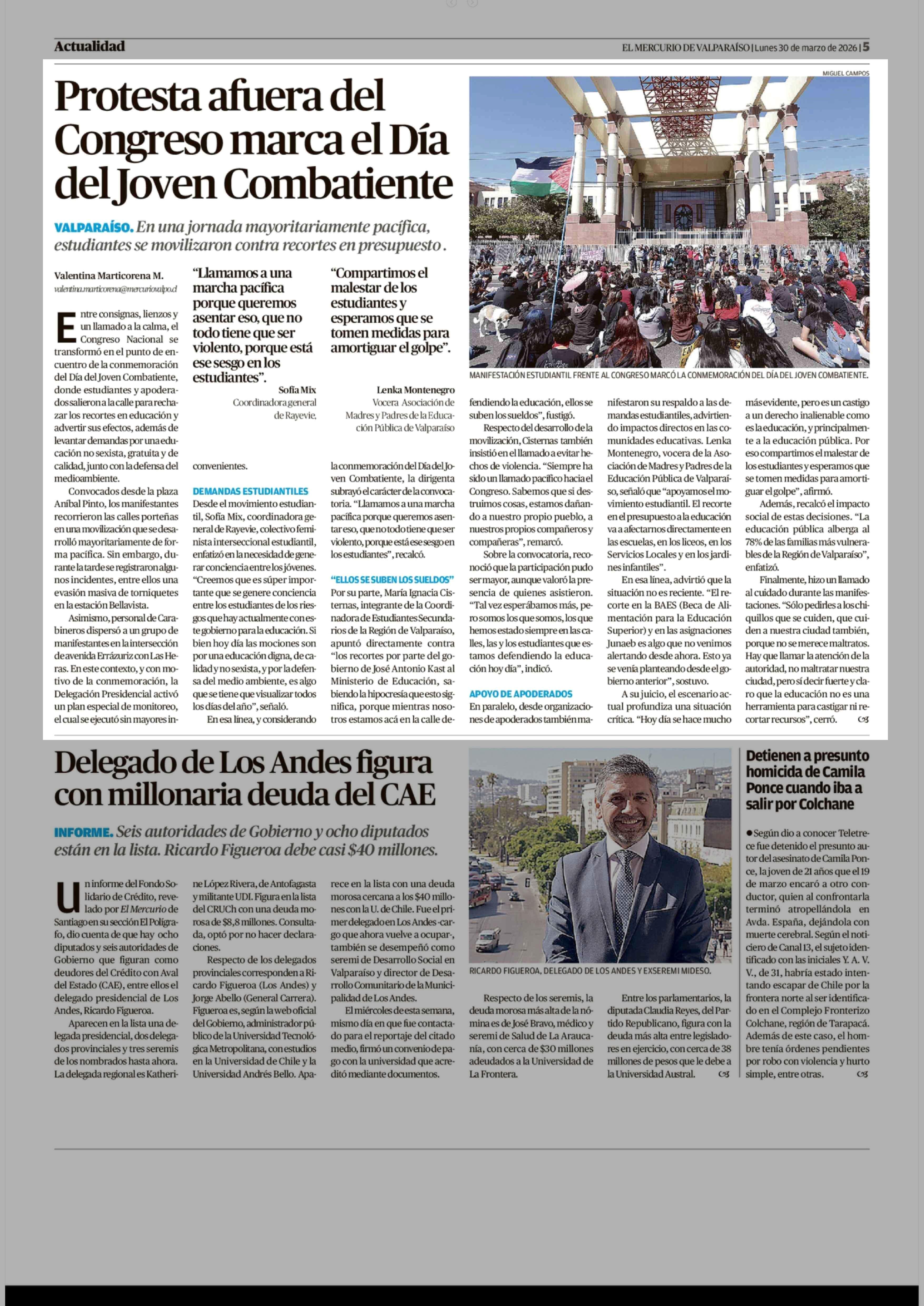 Protesta afuera del Congreso marca el Día del Joven Combatiente 30-03-2026 El Mercurio de Valparaíso |