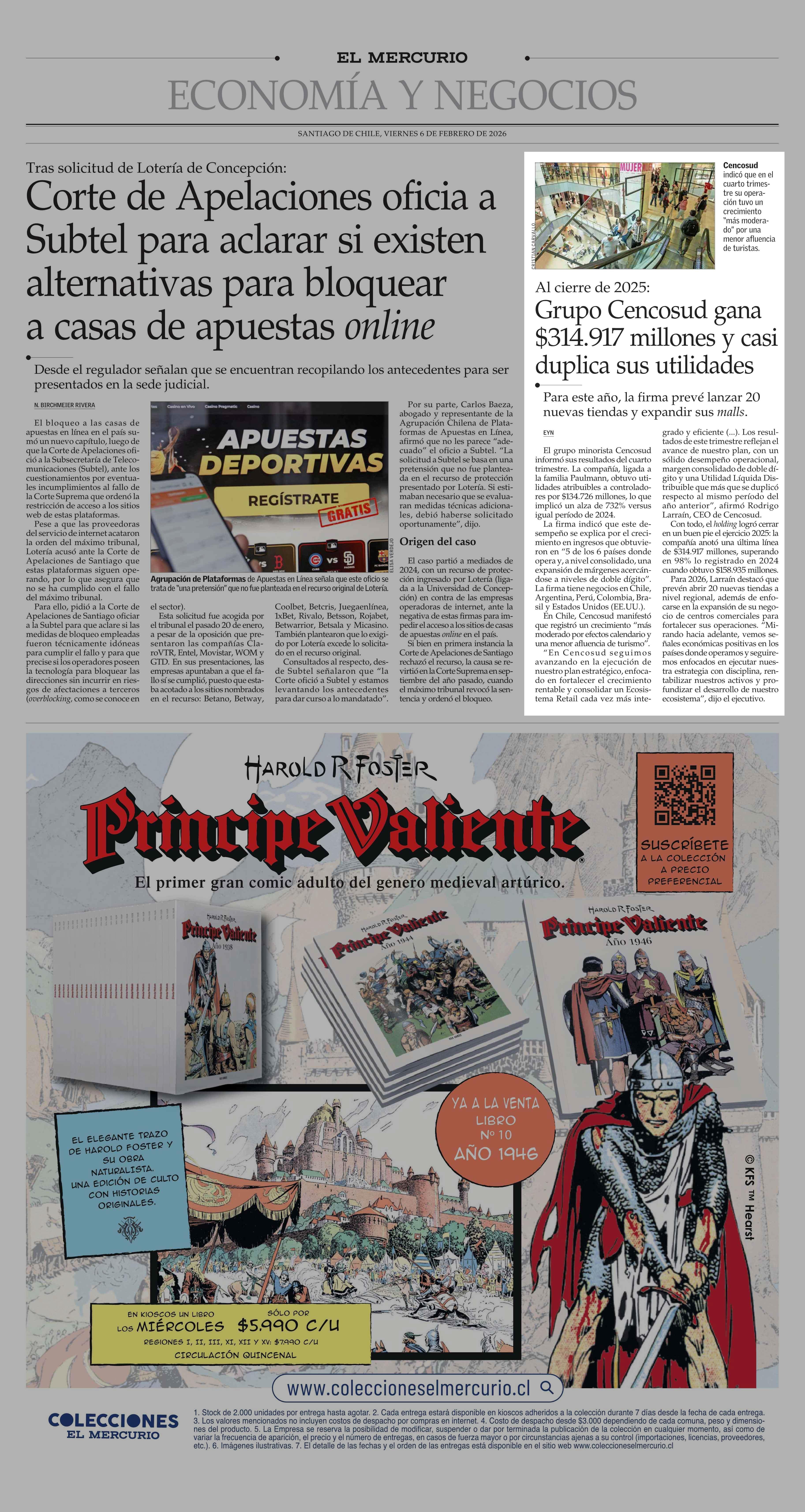 Grupo Cencosud gana $314.917 millones y casi duplica sus utilidades 06-02-2026 El Mercurio |