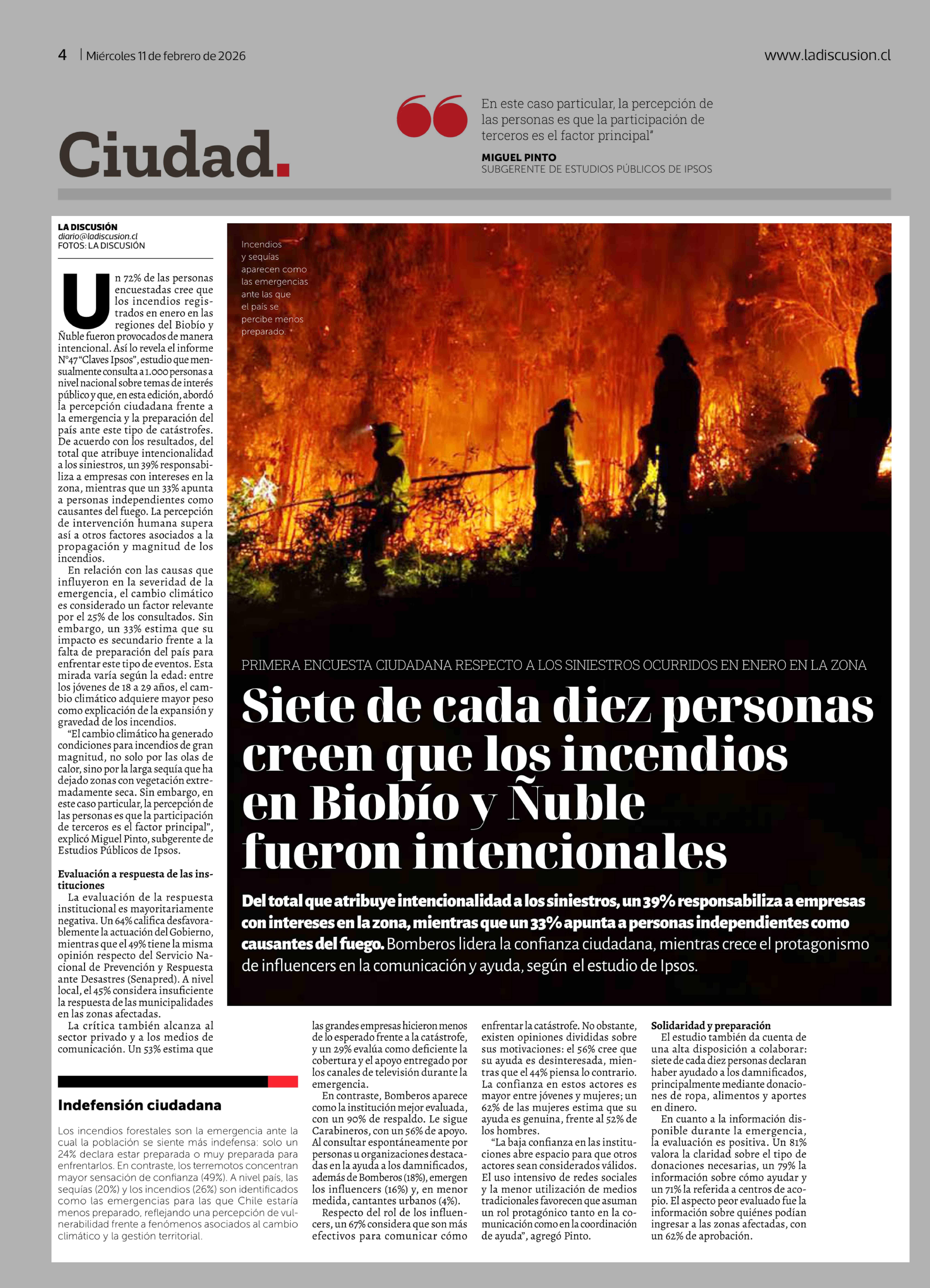 Título: Siete de cada diez personas creen que los incendios en Biobio y Nuble fueron intencionales