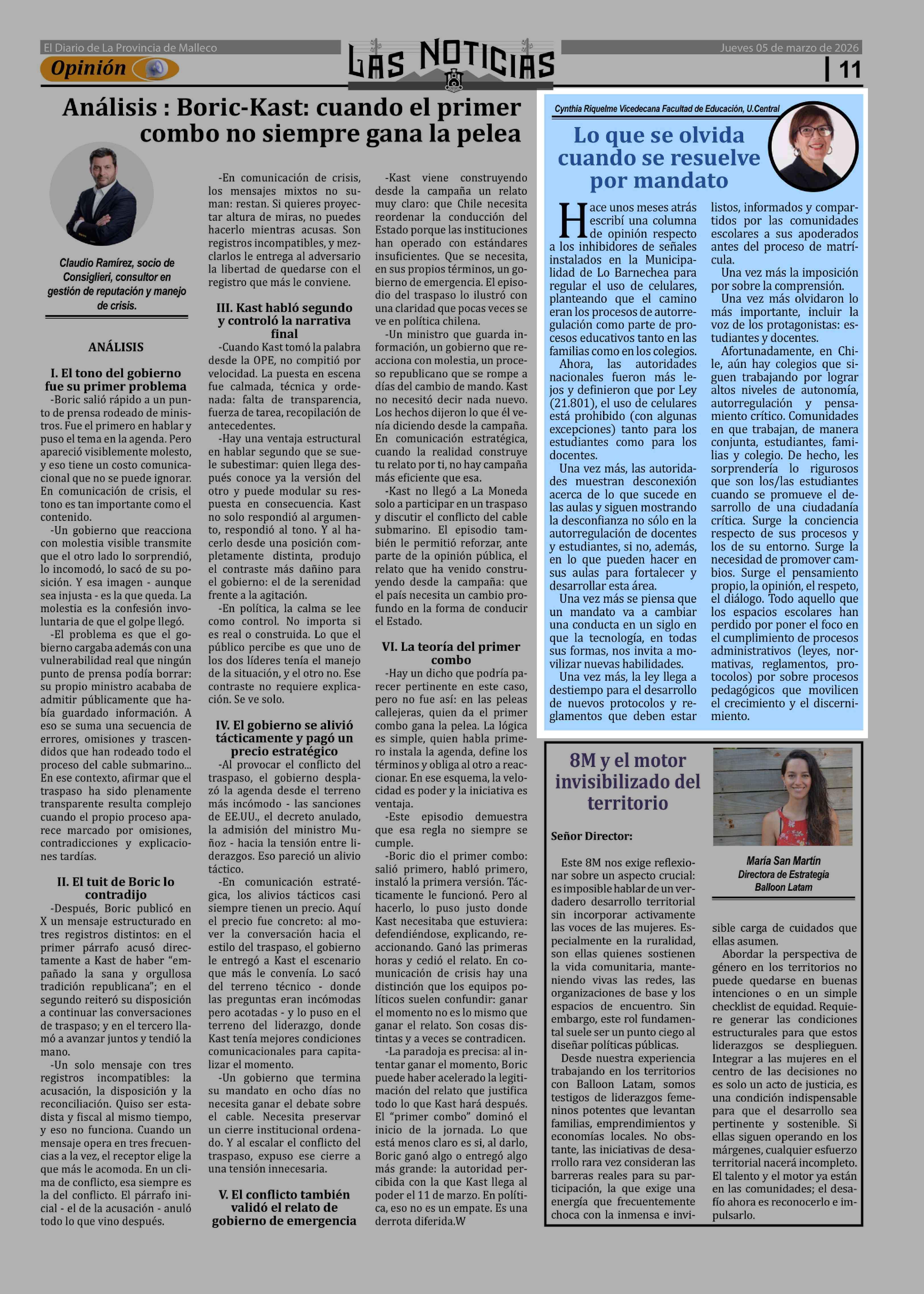 | Fecha: | 05-03-2026 | Sector: | Columnas de Opinión | Región: | Región de la Araucanía |