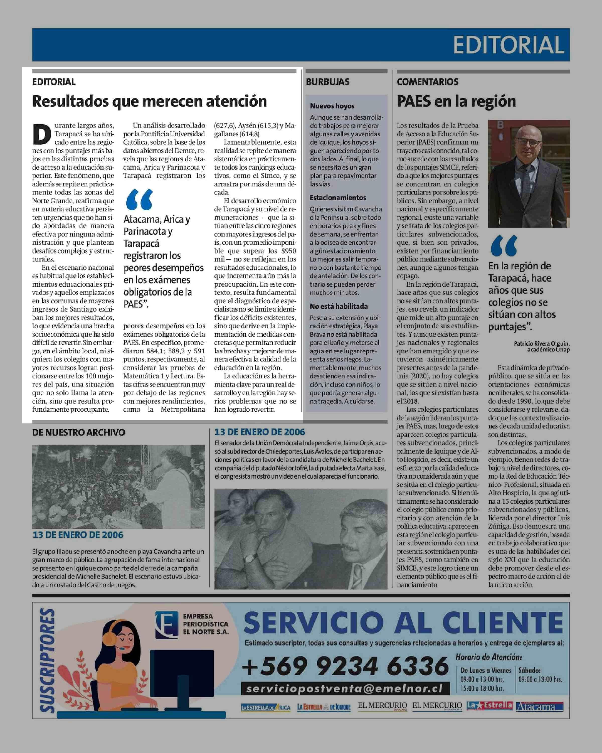 Editorial: Resultados que merecen atención 13-01-2026 La Estrella de Iquique |