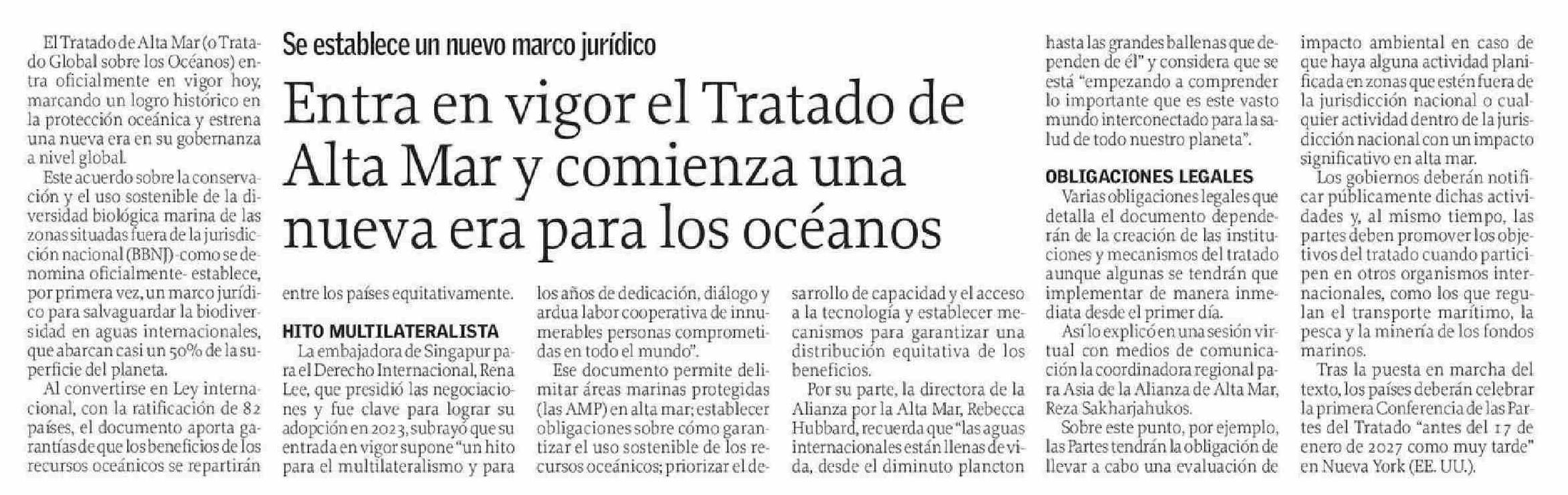 | Título: | Entra en vigor el Tratado de Alta Mar y comienza una nueva era para los océanos |