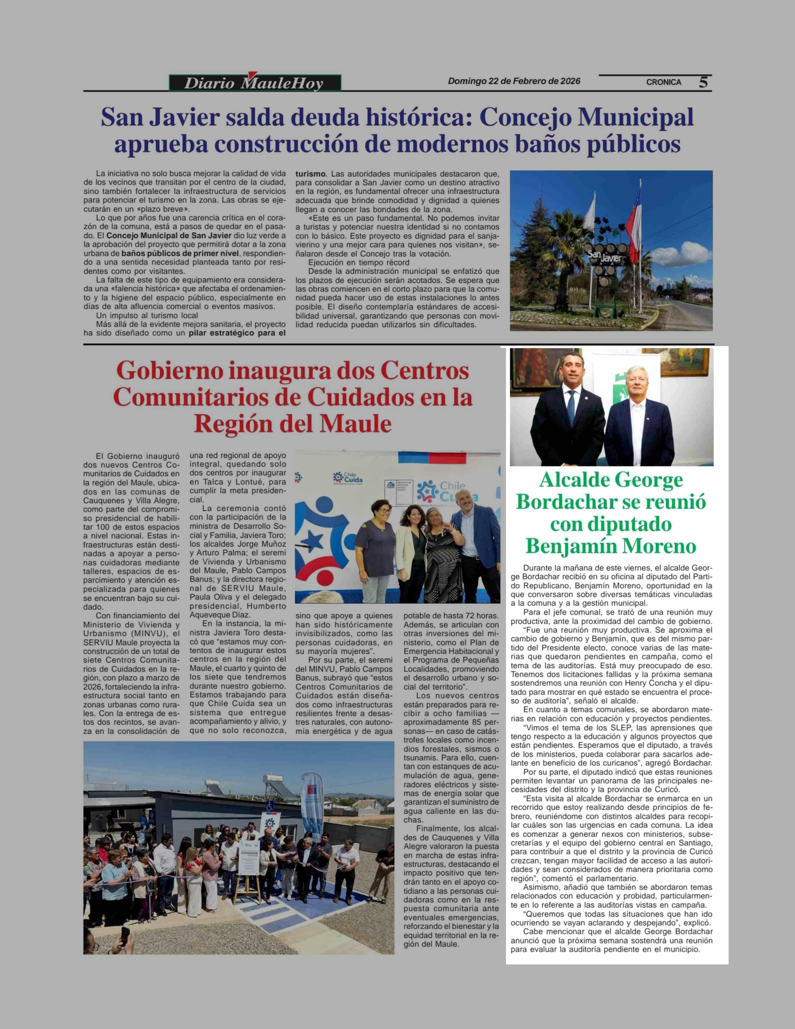 Alcalde George Bordachar se reunió con diputado Benjamín Moreno 22-02-2026 Maule Hoy |