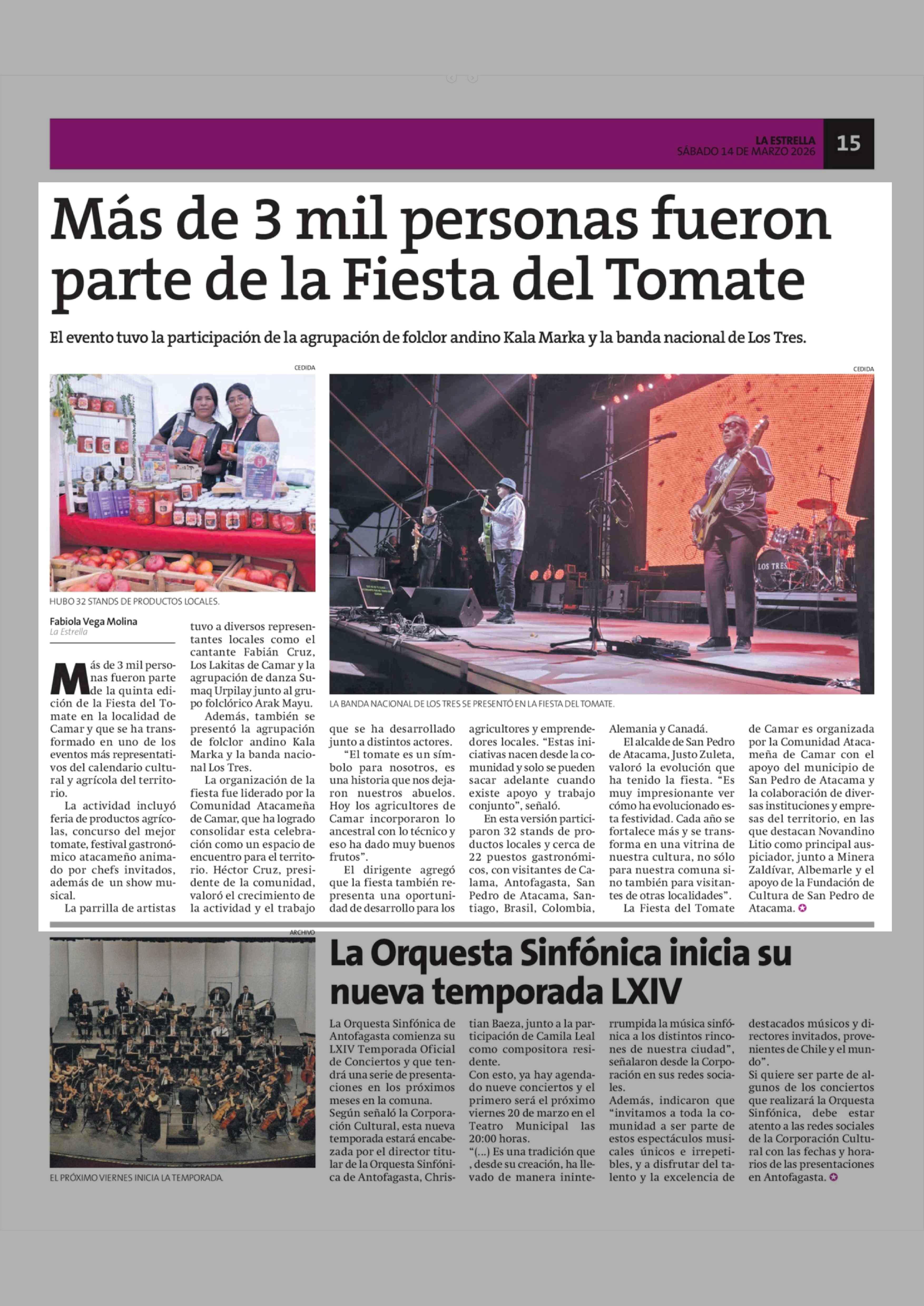 Fuente: La Estrella de Antofagasta (La Estrella de Antofagasta) Página(s): 15