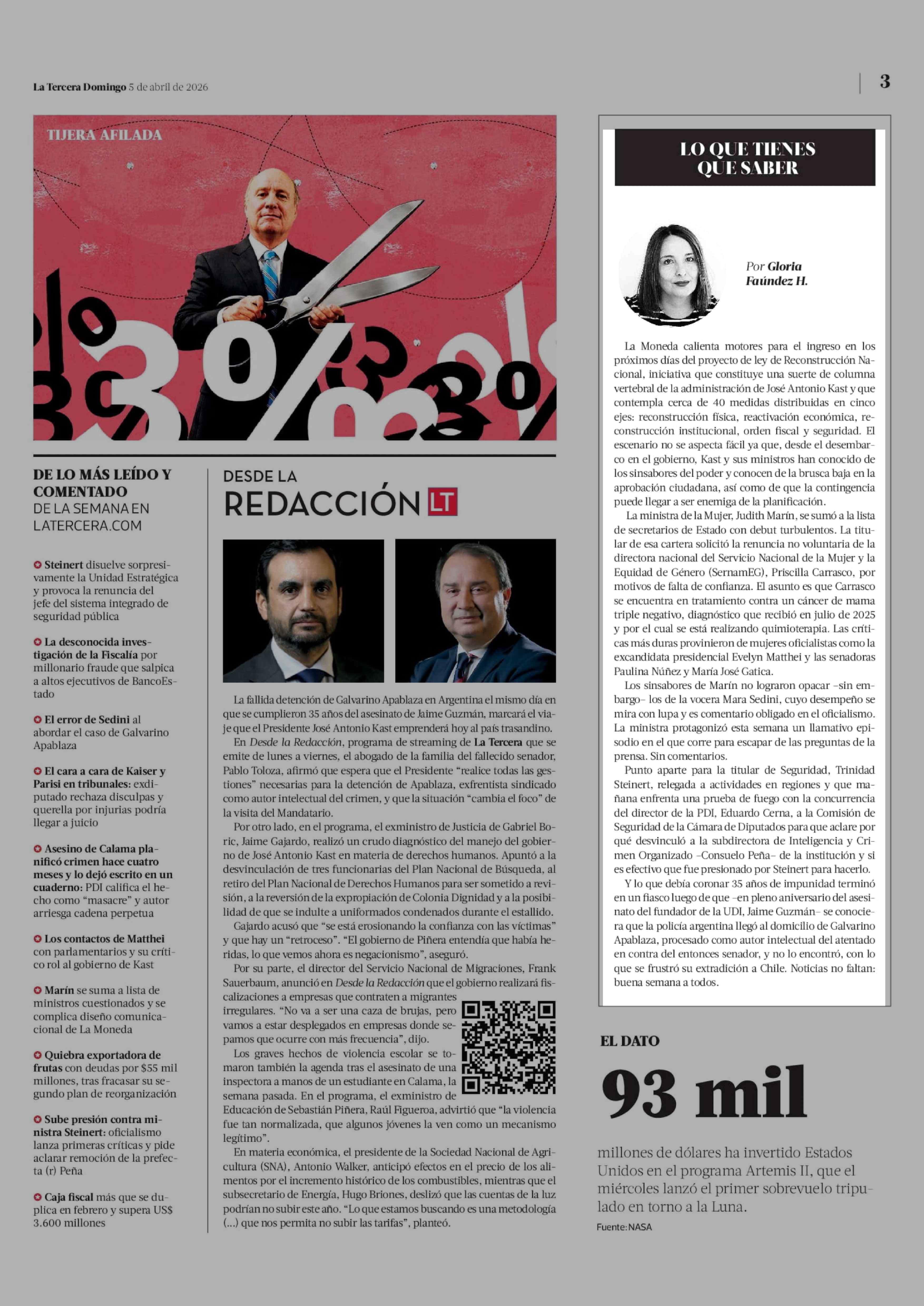 Columnas de Opinión: LO QUE TIENES QUE SABER 05-04-2026 La Tercera |