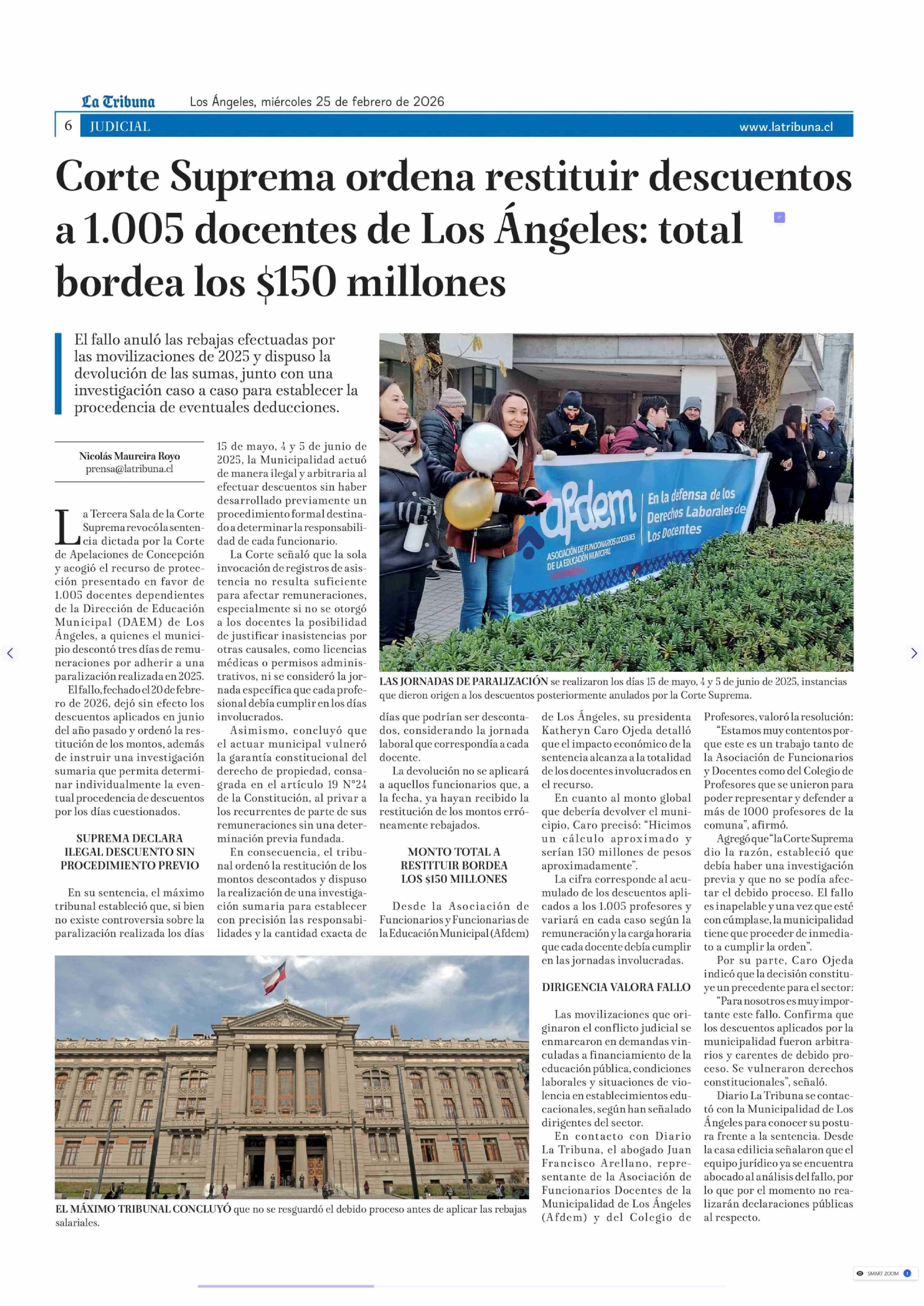 Título: Corte Suprema ordena restituir descuentos a 1.005 docentes de Los Ángeles: total bordea los $150 millones