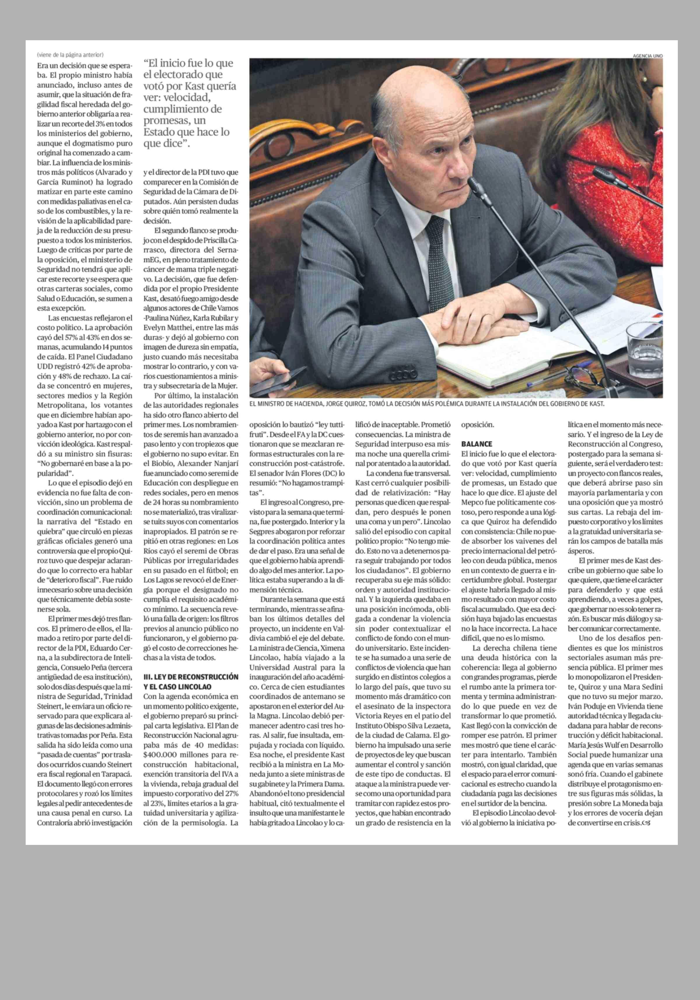 Primer mes de Kast: el inicio, el Mepco y el regreso de la política 12-04-2026 El Mercurio de Antofagasta |