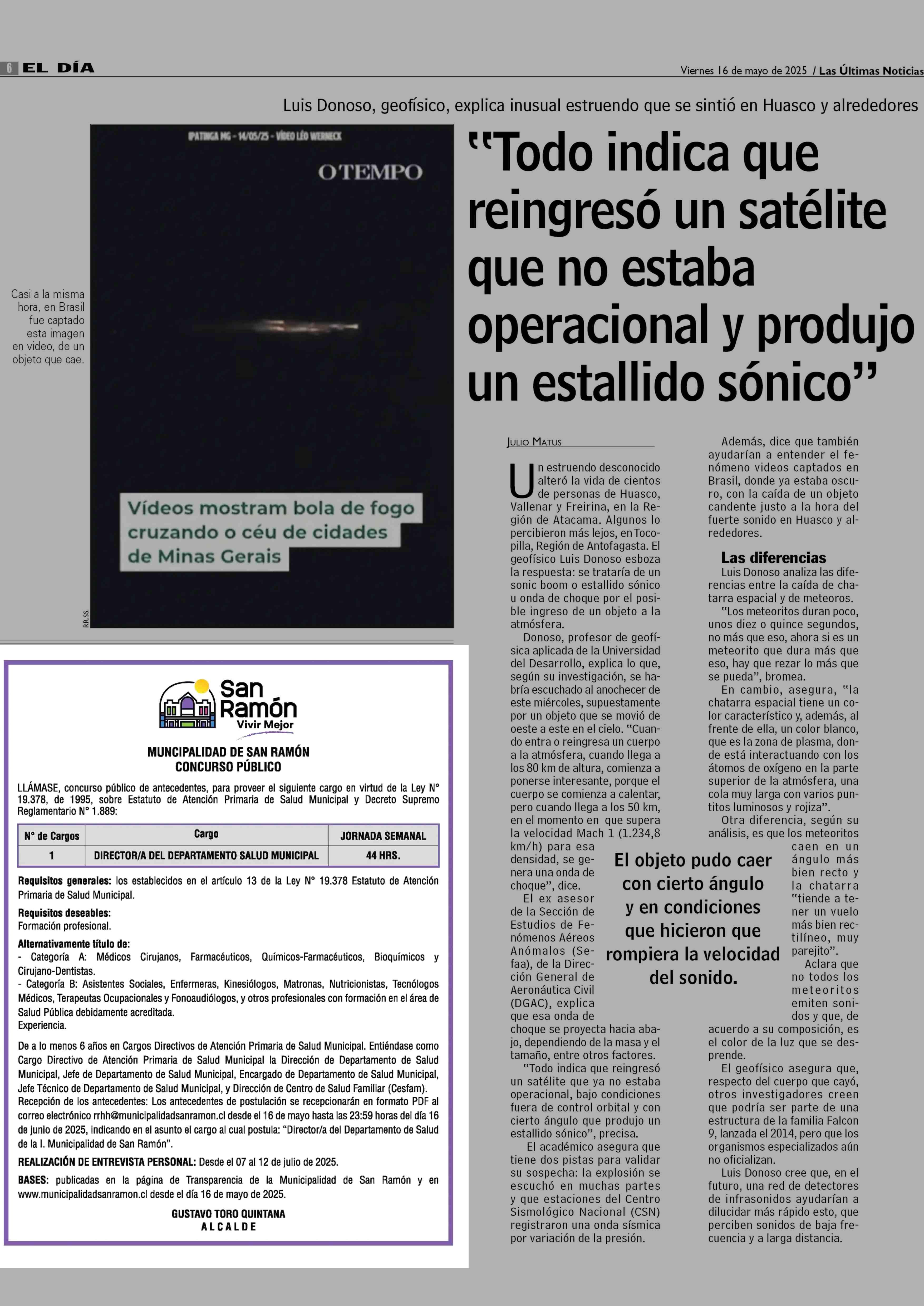 AVISO LICITACIONES: MUNCIPALIDAD DE SAN RAMÓN CONCURSO PÚBLICO 16-05-2025 Las Últimas Noticias |