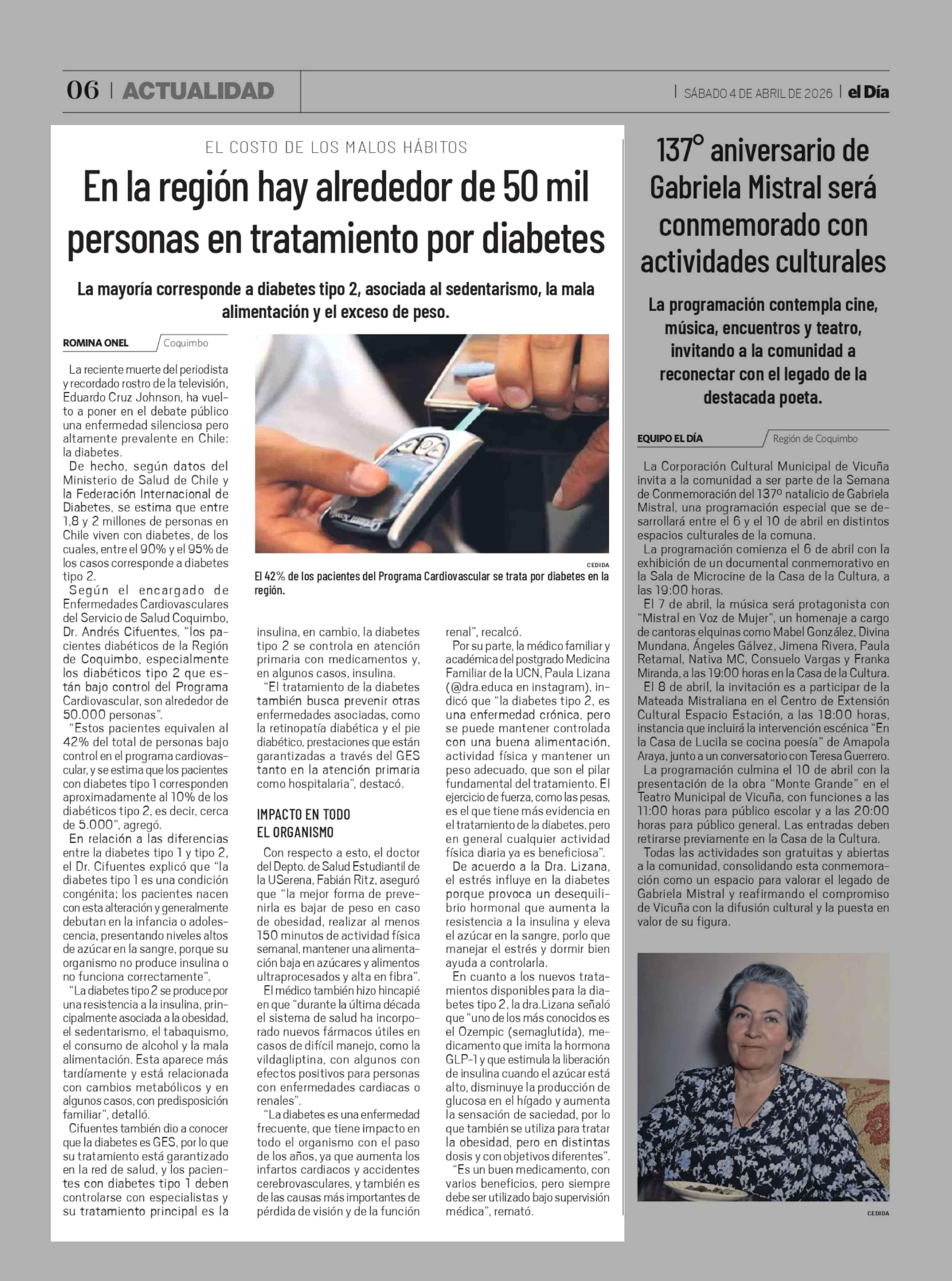 En la región hay alrededor de 50 mil personas en tratamiento por diabetes 04-04-2026 El Día |