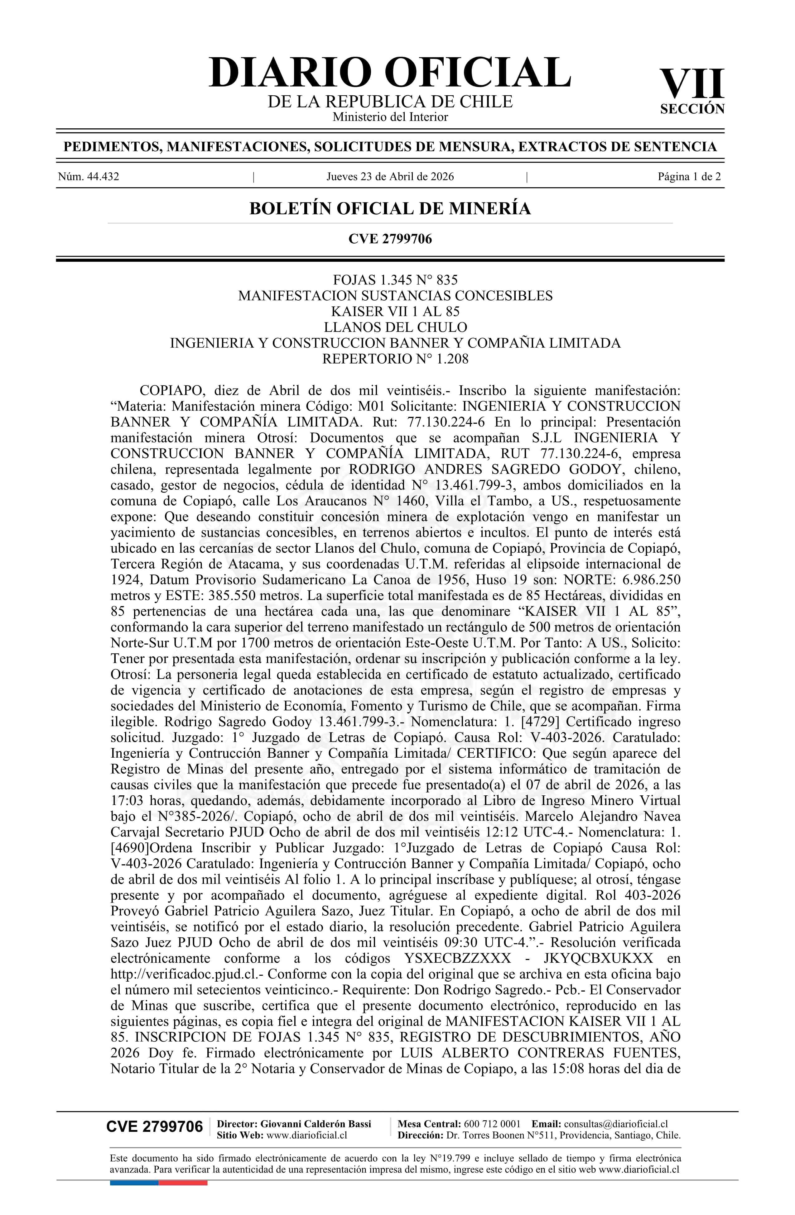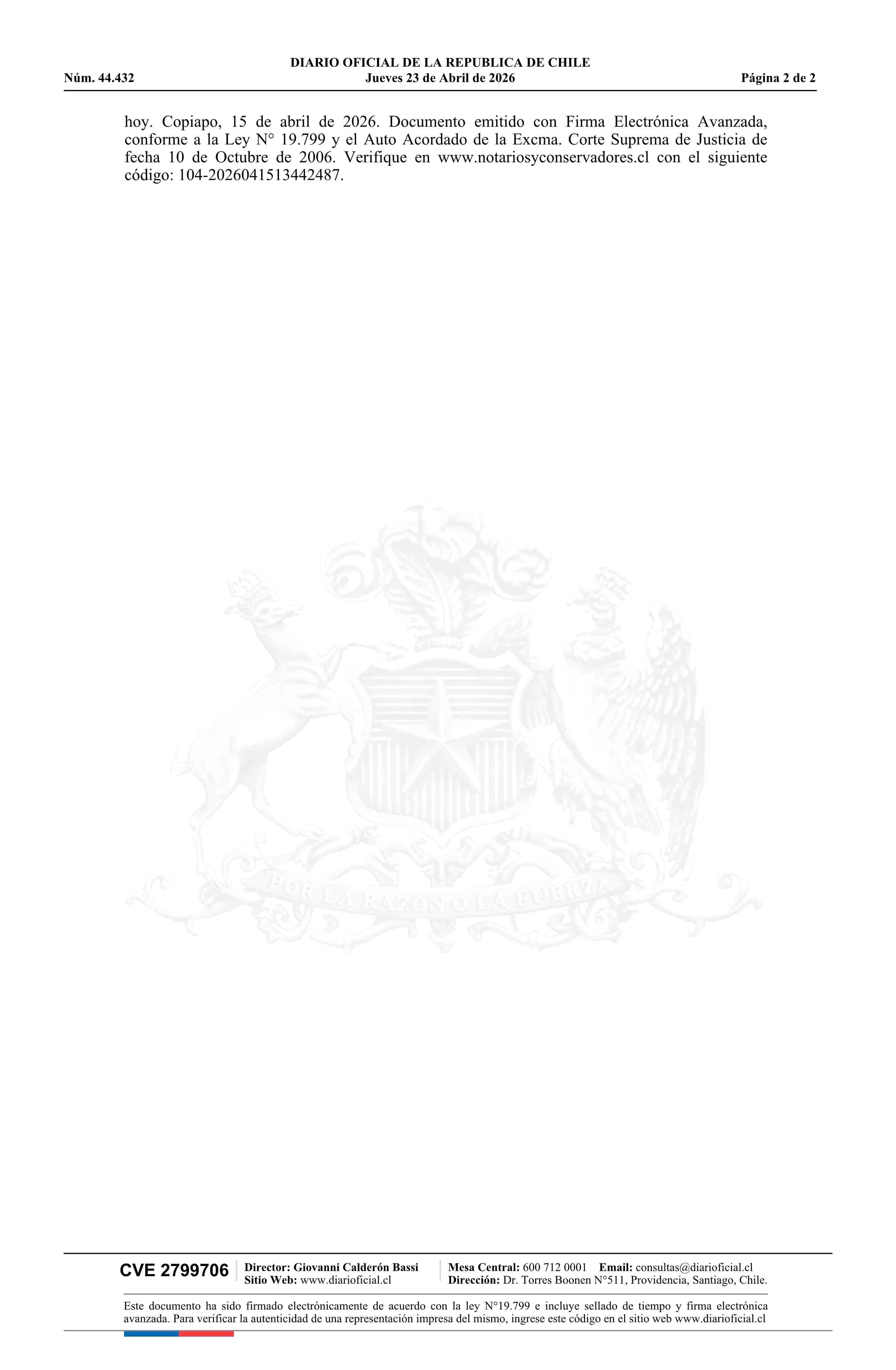 23-04-2026 DIARIO OFICIAL CHILE - BOLETÍN OFICIAL DE MINERÍA