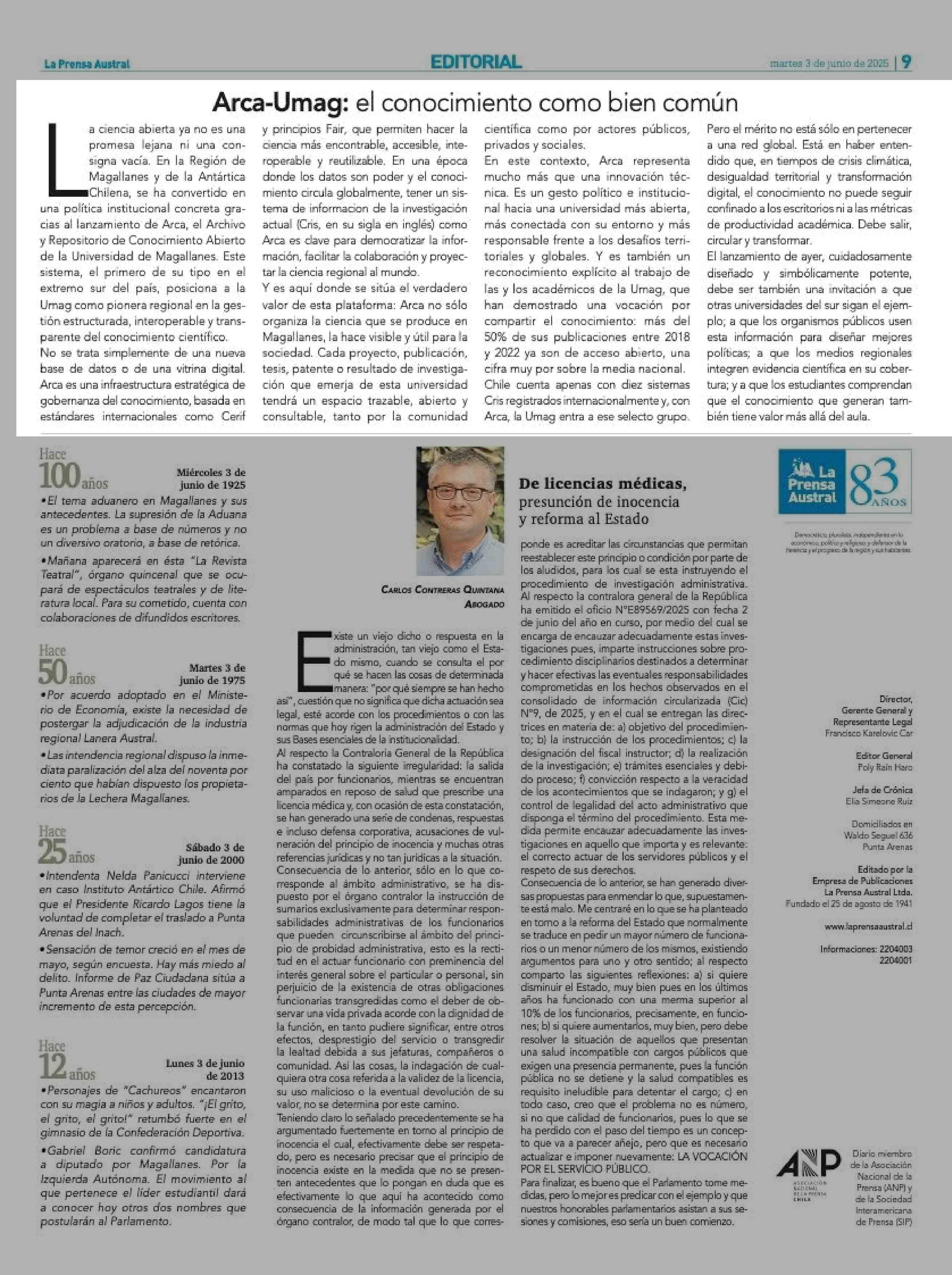 Arca-Umag: el conocimiento como bien común 03-06-2025 La Prensa Austral |